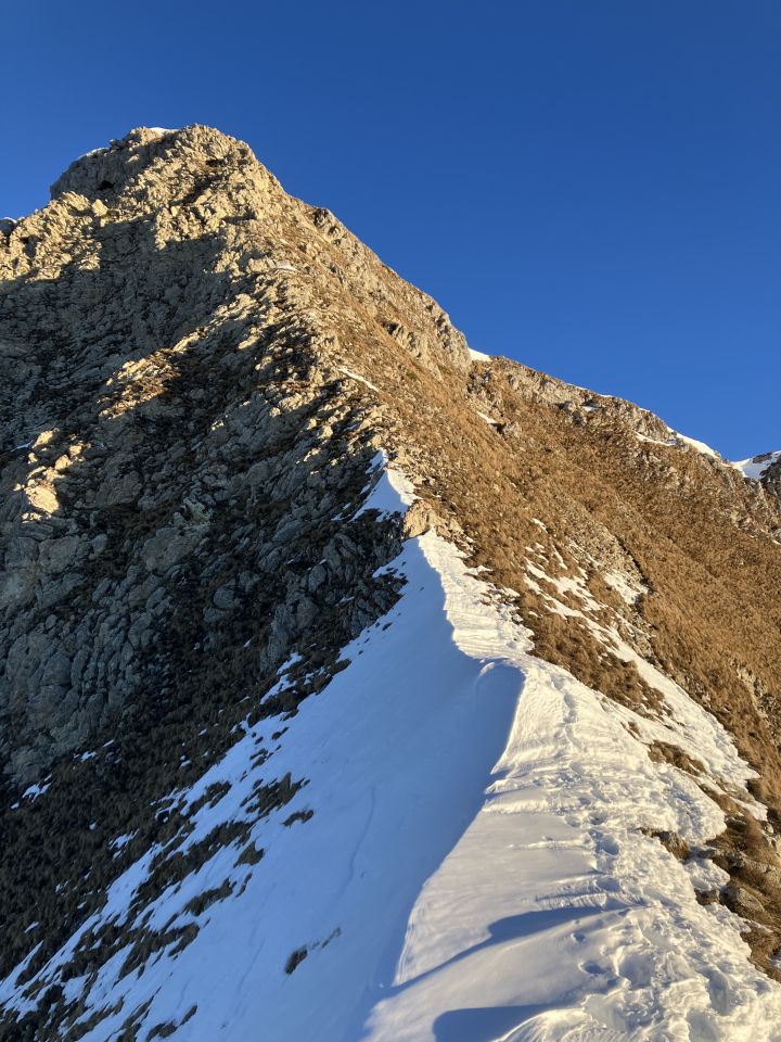 Abfahrt NW-Couli, einfahrt über wenig Gras und abrütschen, bis dan die geniale abfahrt mit tragendem Schnee bis Pulver kommt.