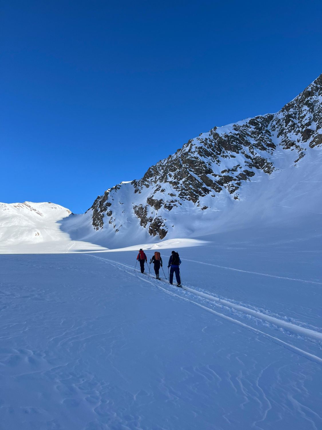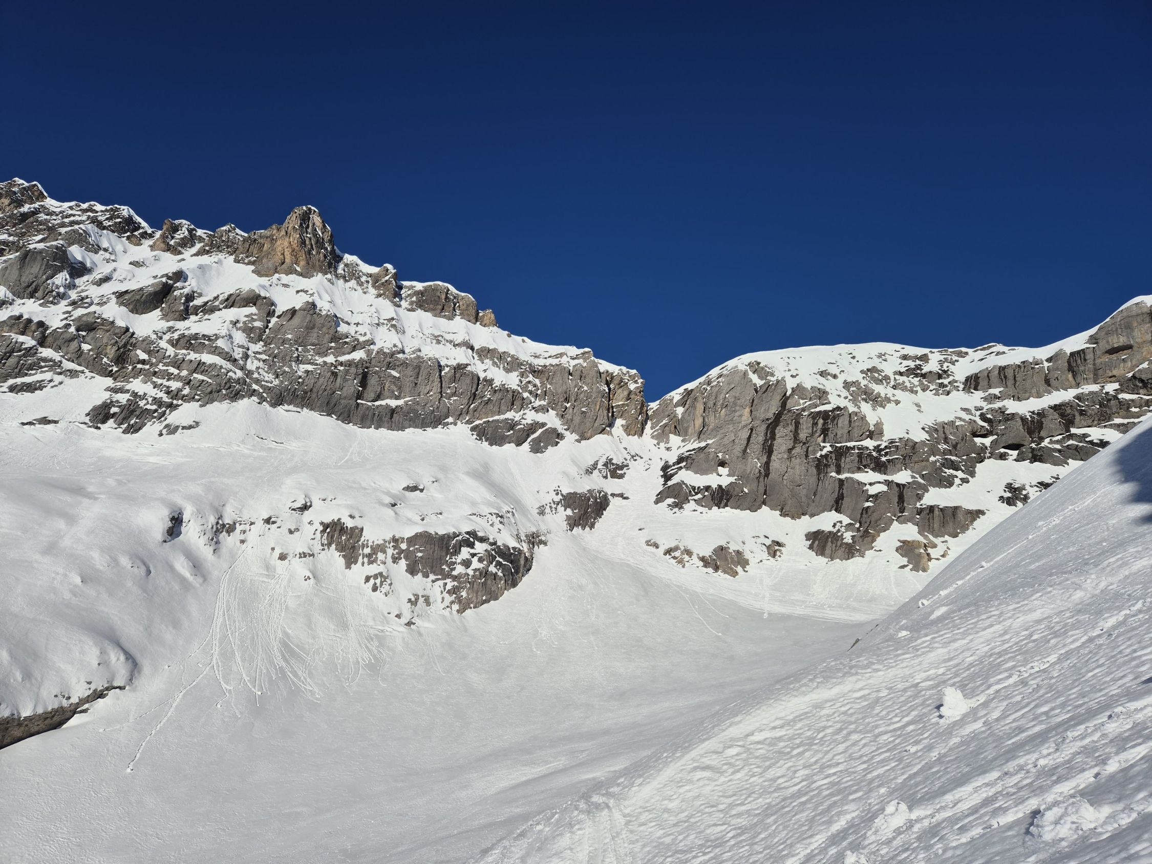 Alpine Tour in grandioser Szenerie. Gute Verhältnisse auf der gesamten Tour. Schnee teils durch Wind, Temperaturen und Tourengeher bearbeitet, ansonsten gäbe es ein "sehr gut" für die Verhältnisse.