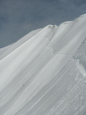 Kleinere (Grund-)Lawinen schon abgegangen, zahlreiche Fischmäuler v.a. an E- bis S-Hängen, sonst keine Warnzeichen wahrgenommen.