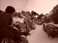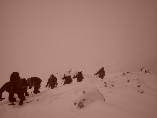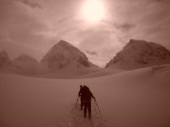Von der Wiesbadener Hütte kommend, dem Sommerweg auf die Grüne-Kuppe. Dann kleine Abfahrt bis auf den Gletscher. Anseilen und weiter Westwärts bis zum östlichen Silvretta Kamm. Dann Südwärts dem Felsriegel entlang und in einem Weiten Bogen zur Fuorcla-Buin. Dort machen wir das Skidepot. Mit Steigeisen und Pickel der Westflanke entlang auf den Westgrat, entlang dem Grat zum Gipfel. Fertig :-)