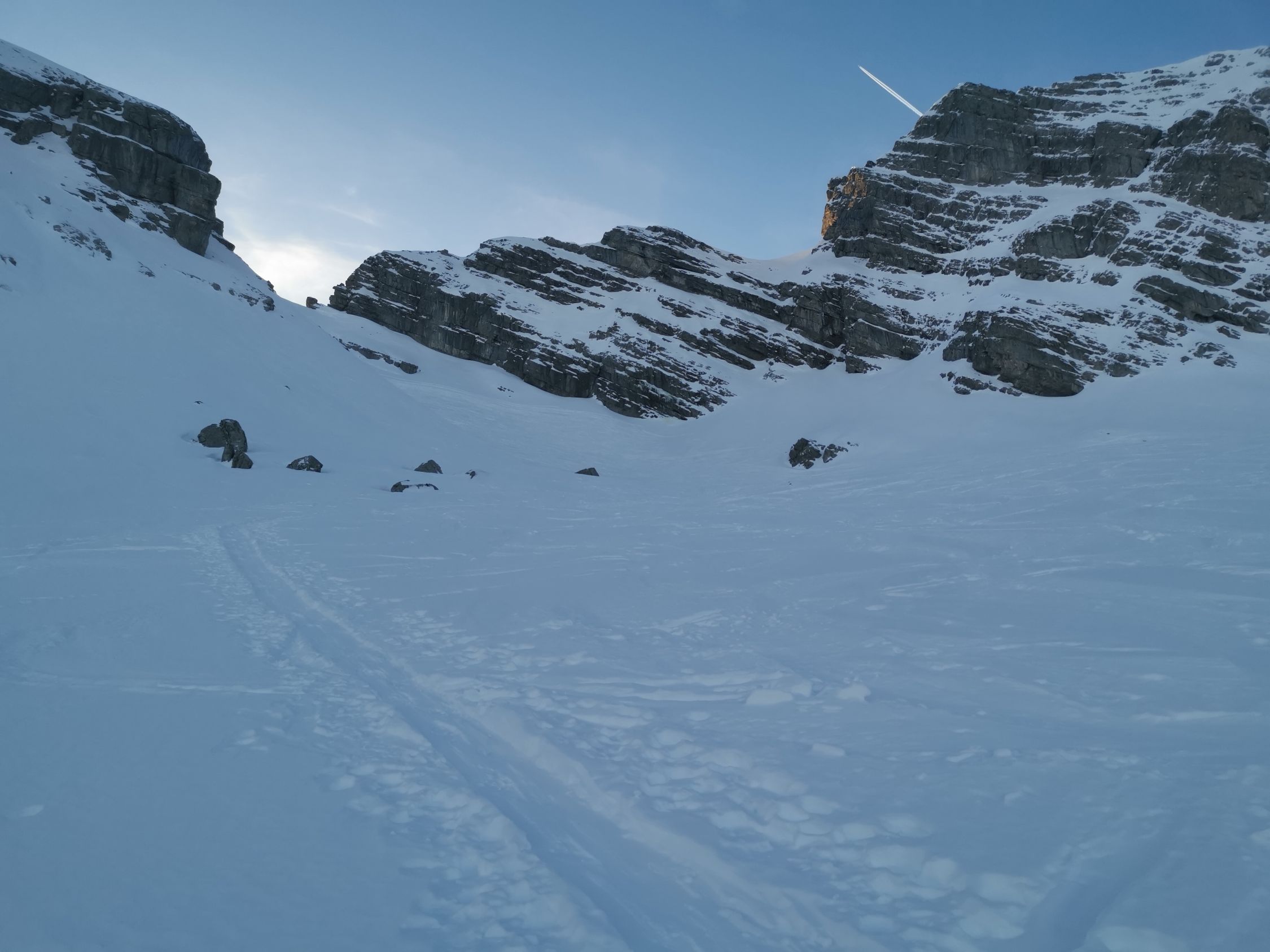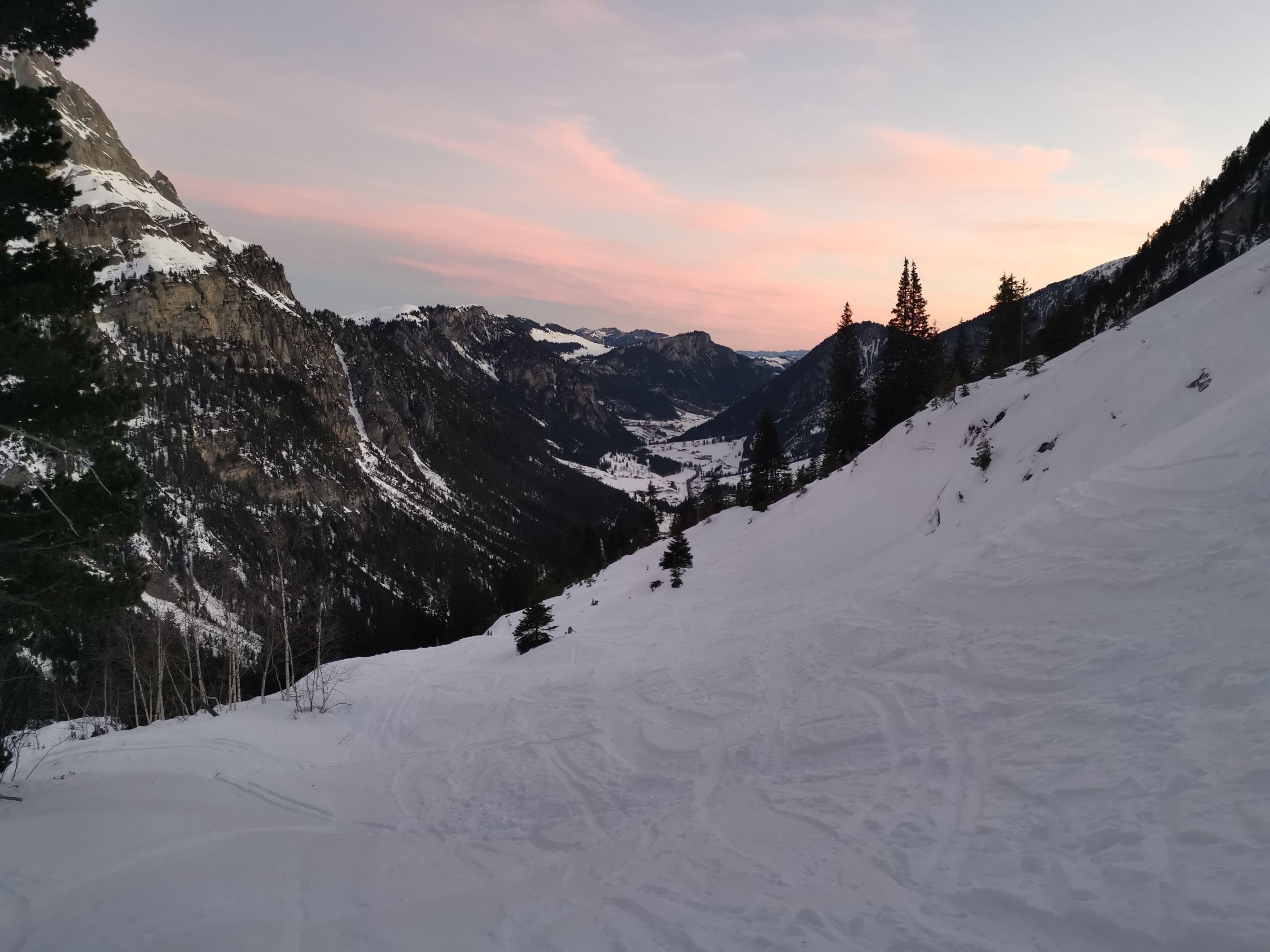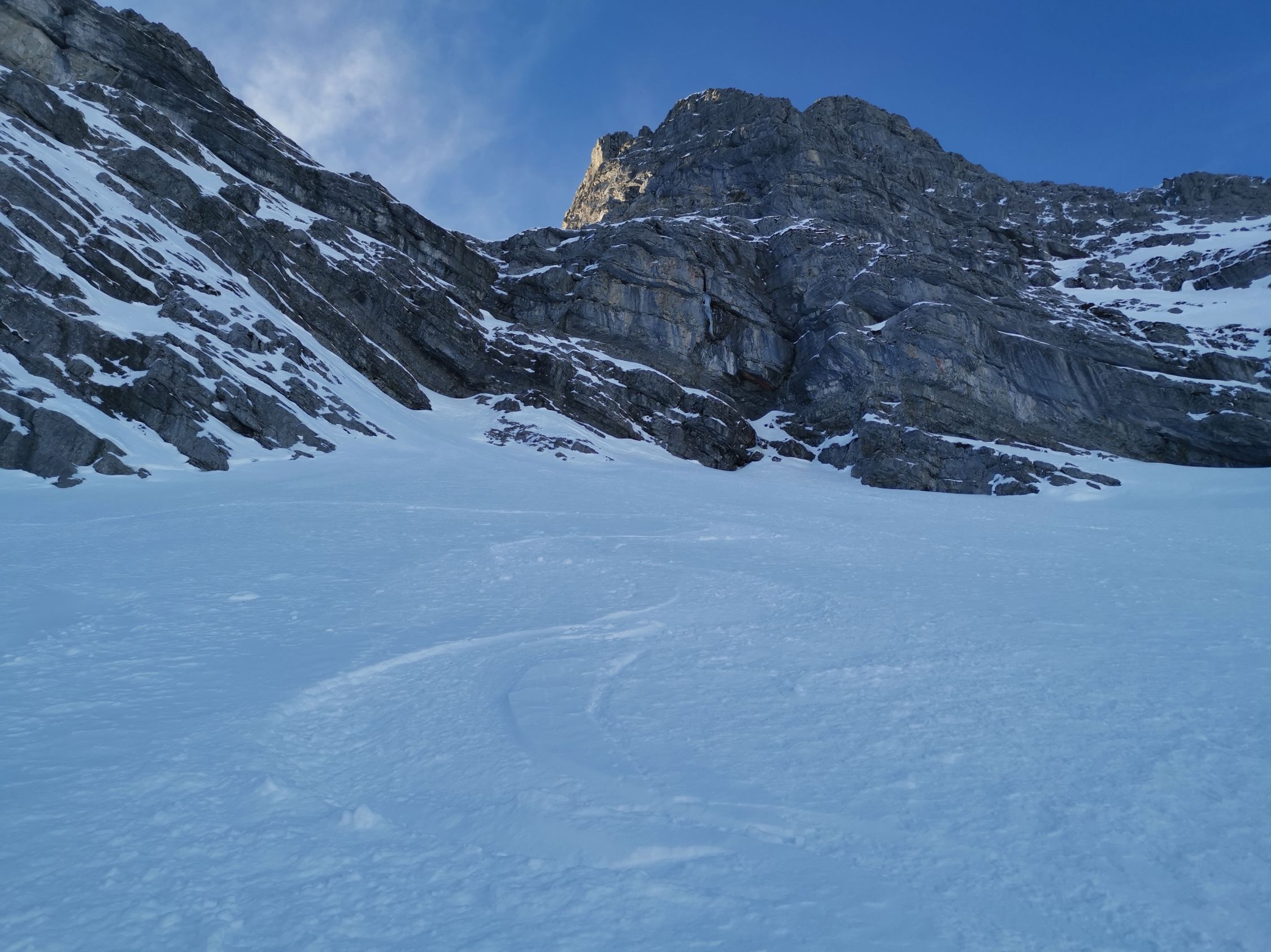 Immer noch tolle Verhältnisse am Rothorn-Nordgrat. Aufstiegsspur(en) top, Abfahrt abwechselnd Pulver und Presspulver. Auf der Alpstrasse dann Piste.