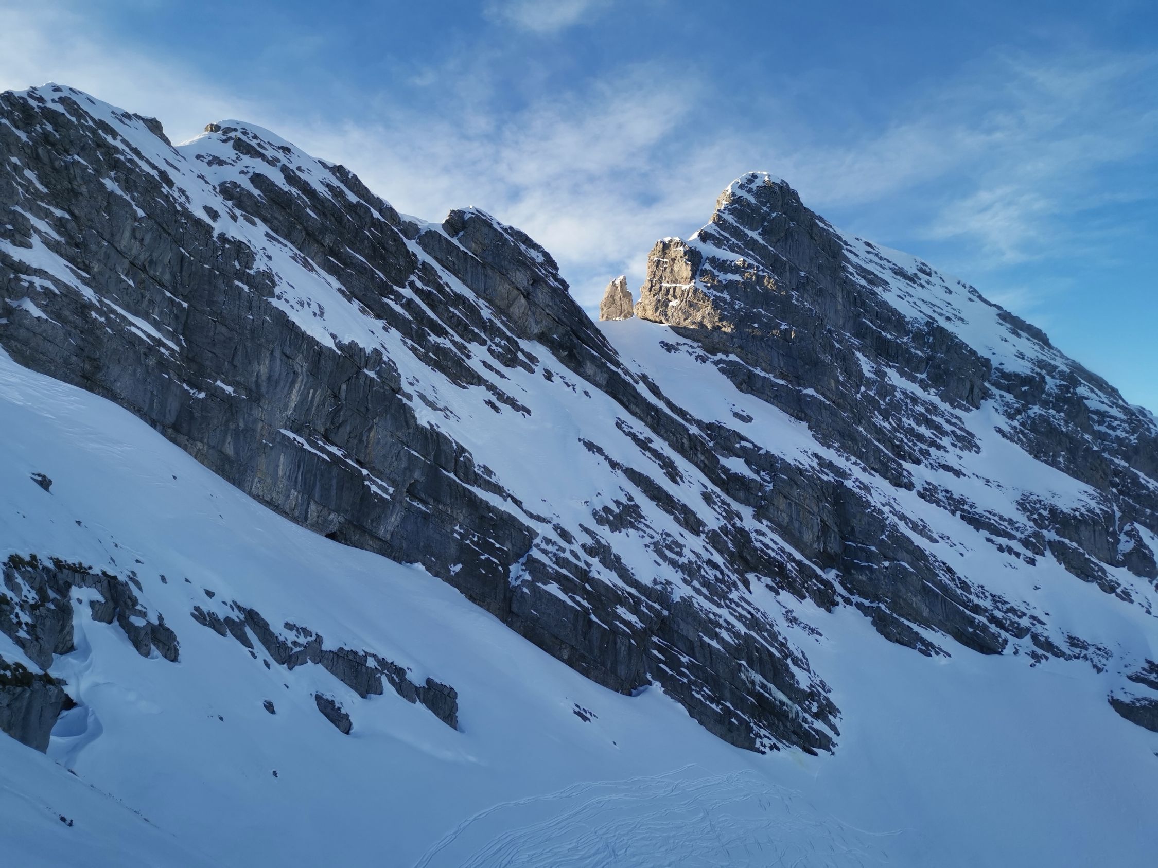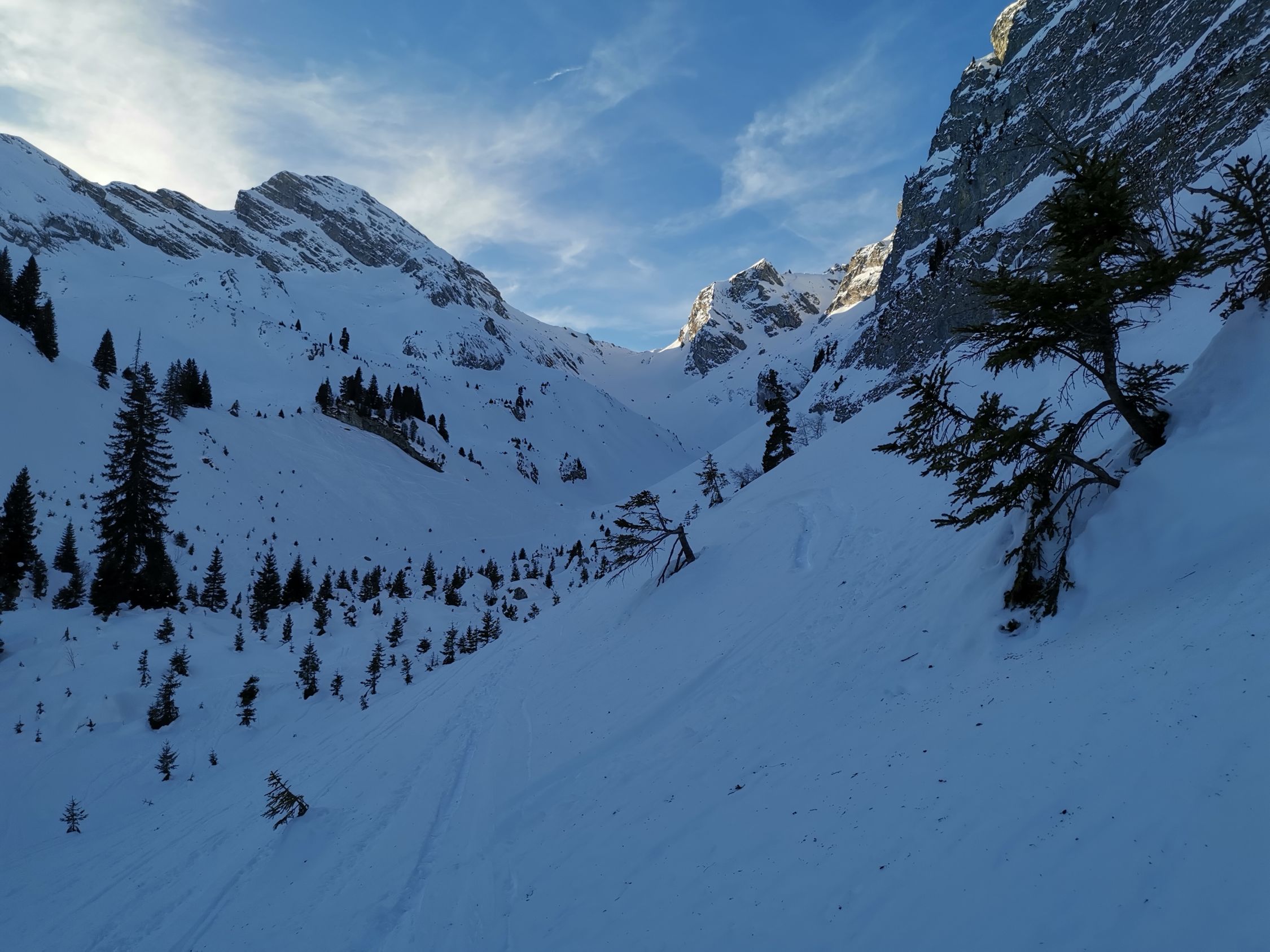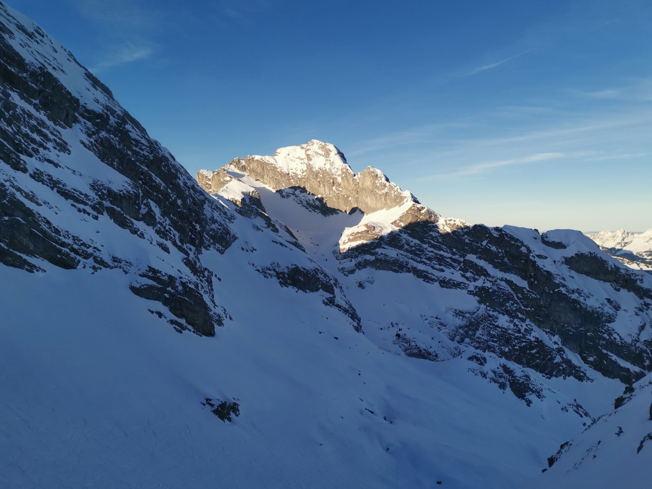 Immer noch tolle Verhältnisse am Rothorn-Nordgrat. Aufstiegsspur(en) top, Abfahrt abwechselnd Pulver und Presspulver. Auf der Alpstrasse dann Piste.