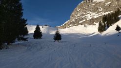 Start um 8 von der Grimmialp. Um diese Zeit ist heute noch fast niemand unterwegs. Die Abkürzungen sind alle gut machbar, die Spur ist gut griffig. Weiter oben ist alles dermassen vercharret, dass die Aufstiegsspur teilweise nicht sichtbar ist. Ab dem Alpetli war der mässige Wind gut zu spüren. Deshalb nur kurze Gipfelrast und Abfahrt über Fromatt nach Matten.