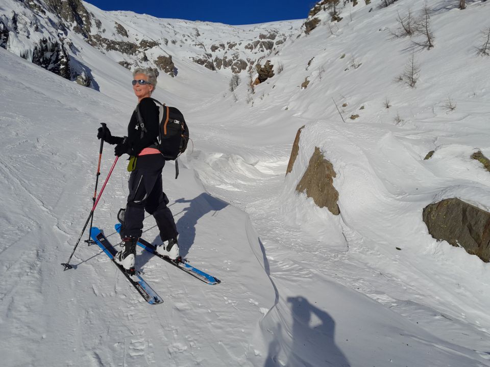 Gute Verhältnisse, gut zu fahren. Allerdings "pulverfrei" - die Weihnachtsstürme haben den Schnee festgeblasen, Abfahrt daher pistenähnlich.