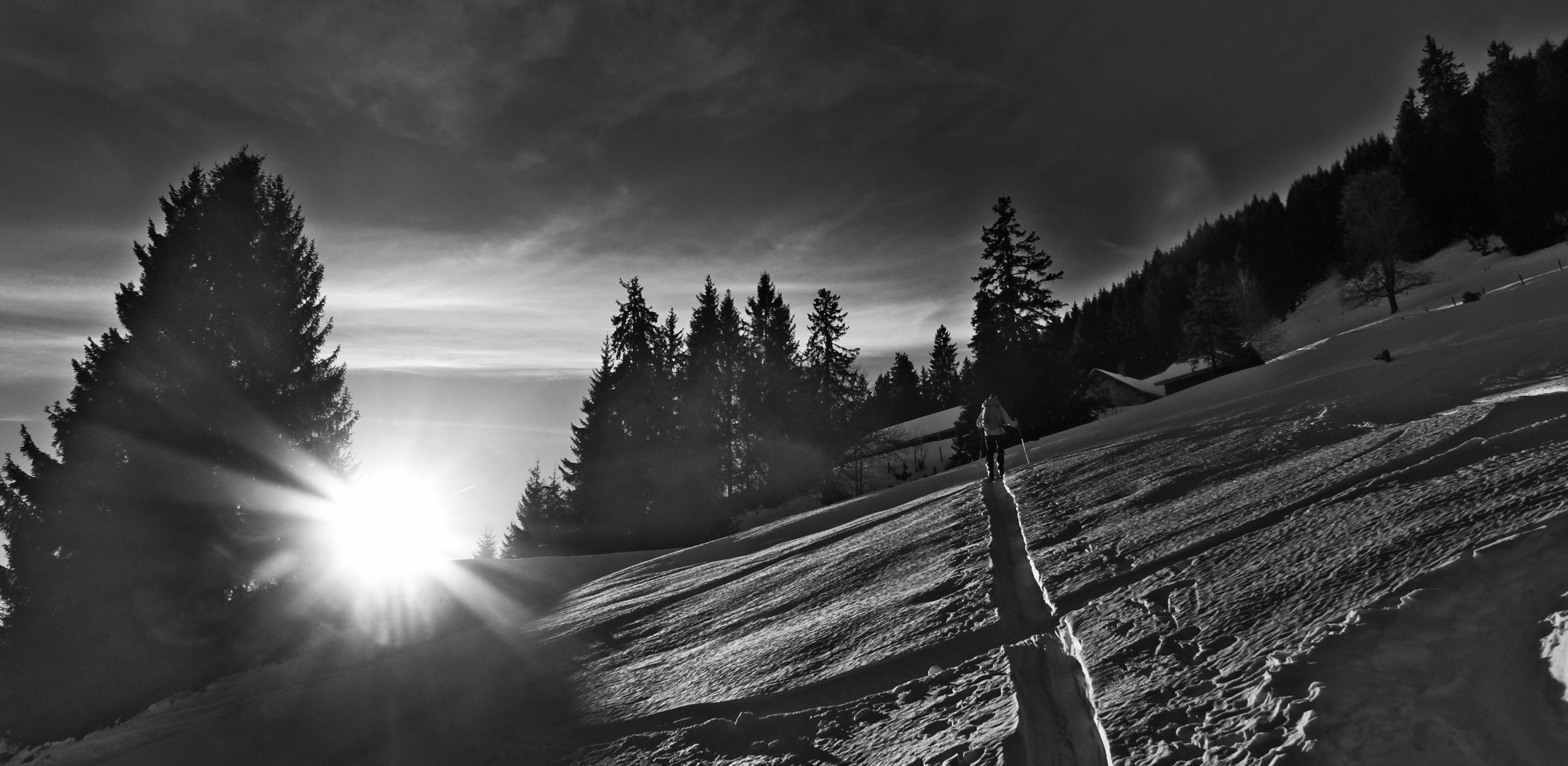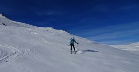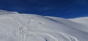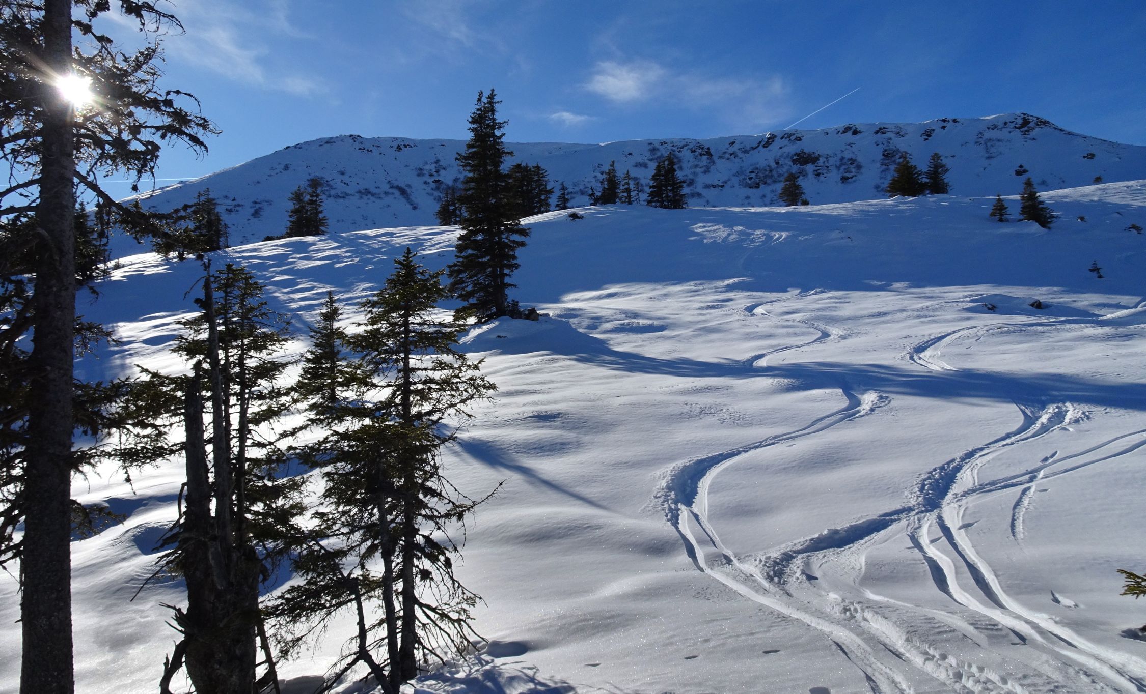 Vom Parkplatz Chapfensee weg bis zum Gipfel eine genügende Schneedecke. Trotz der vielen Spuren lässt sich bei der Abfahrt immer noch freies Gelände finden.