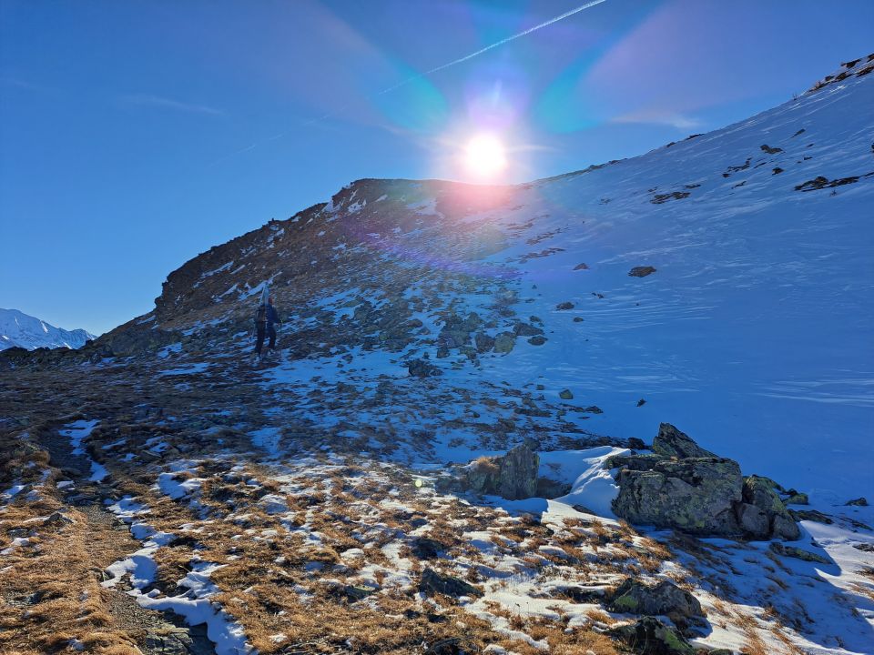 Schnee hat es, allerdings nicht zu viel. Das ganze Gebiet ist windbearbeitet. Man findet aber auch noch Pulver.