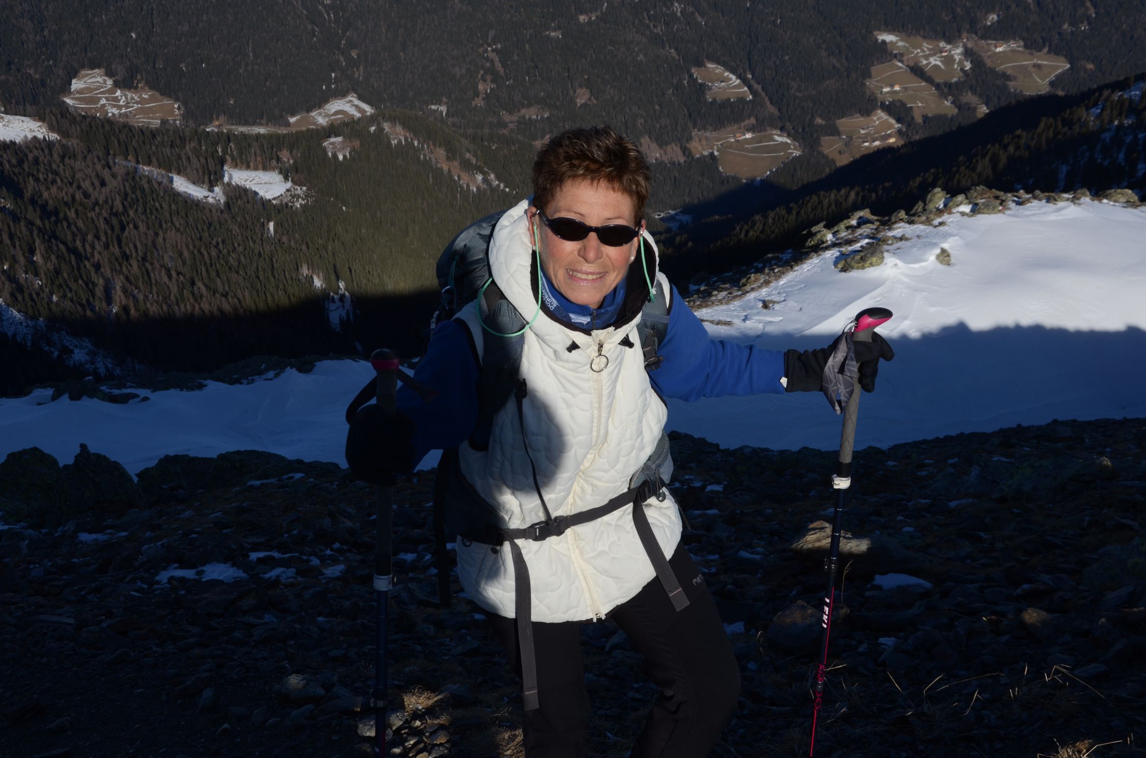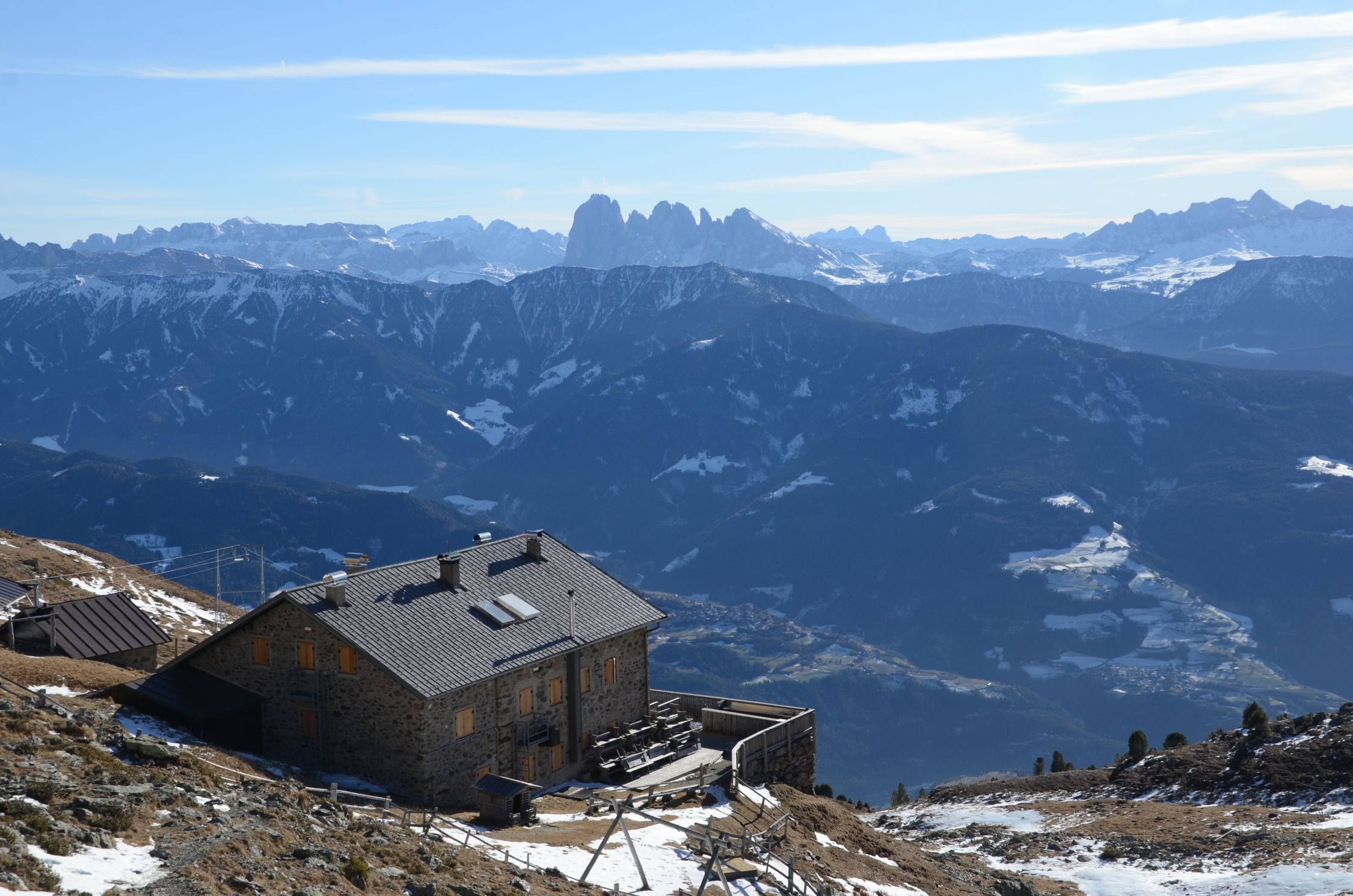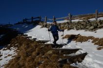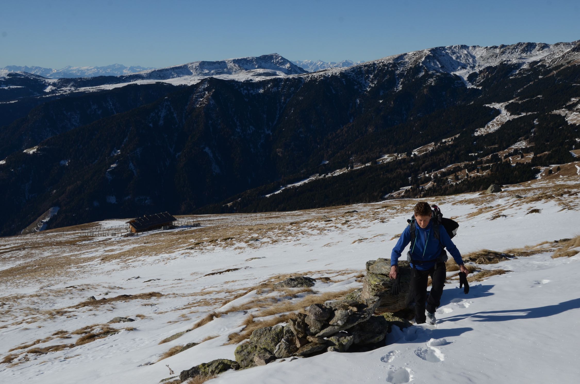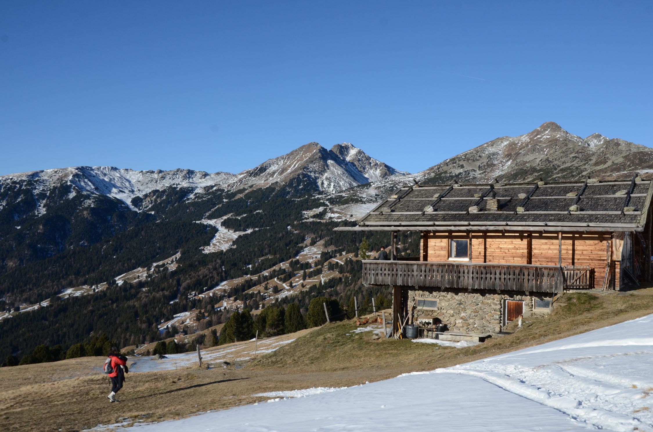 Es sind einige Schneeflecken vorhanden, besonders auf den Wegen und Steigen. An sonst fast aper.