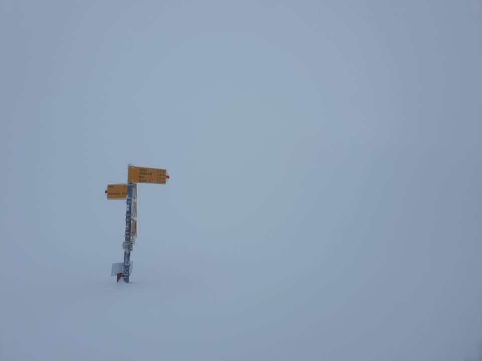 Daher beim Brisenhuus umgekehrt. So hats keinen Spass gemacht und auch in einen potentiell lawinengefährlichen Hang ohne Sicht, wollten wir nicht.
