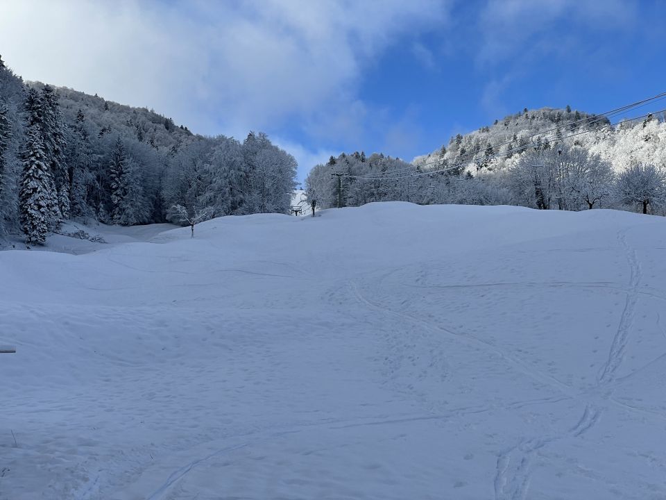 Start bei der Talstation Skilift, weiter unten für Abfahrt wohl noch zu wenig. Schöner Aufstieg durch die winterliche Juralandschaft. Im Waldstück unterhalb des Gipfelhangs immer noch zu wenig Schnee, schaben oder tragen. Oben kalt mit Wind, daher rasch wieder runter. Gipfelhang ausgezeichnet mit Pulver auf Unterlage. Weiter unten waren die alten Spuren noch zu sehr spürbar, Fahrgenuss mit den Steinski daher gemindert. Steinski gute Idee, die Waldpassage lässt grüssen.