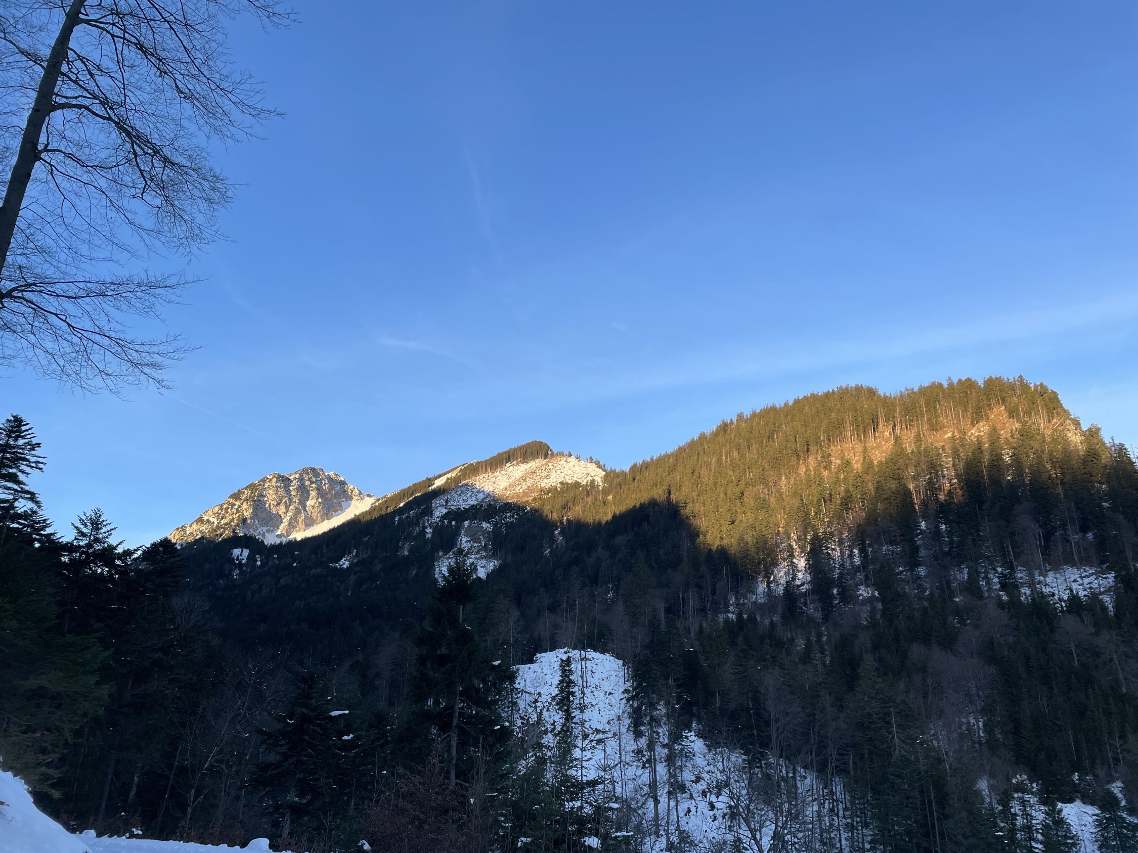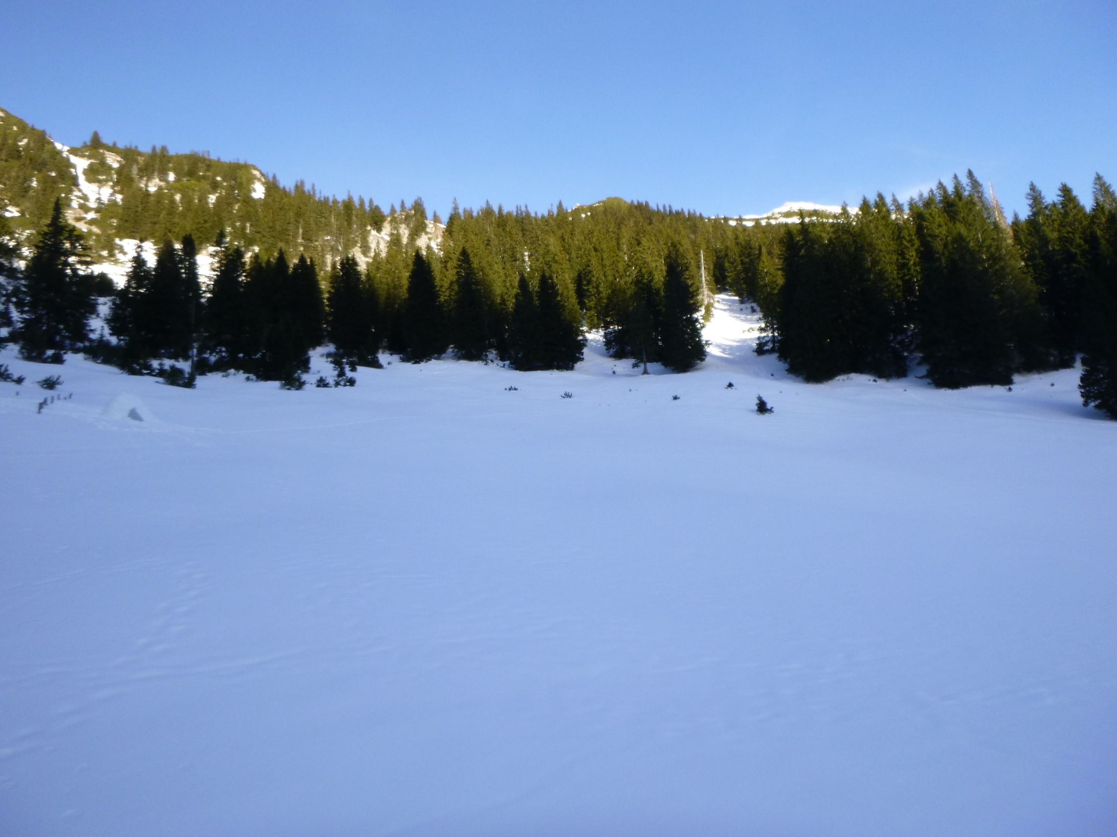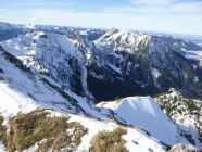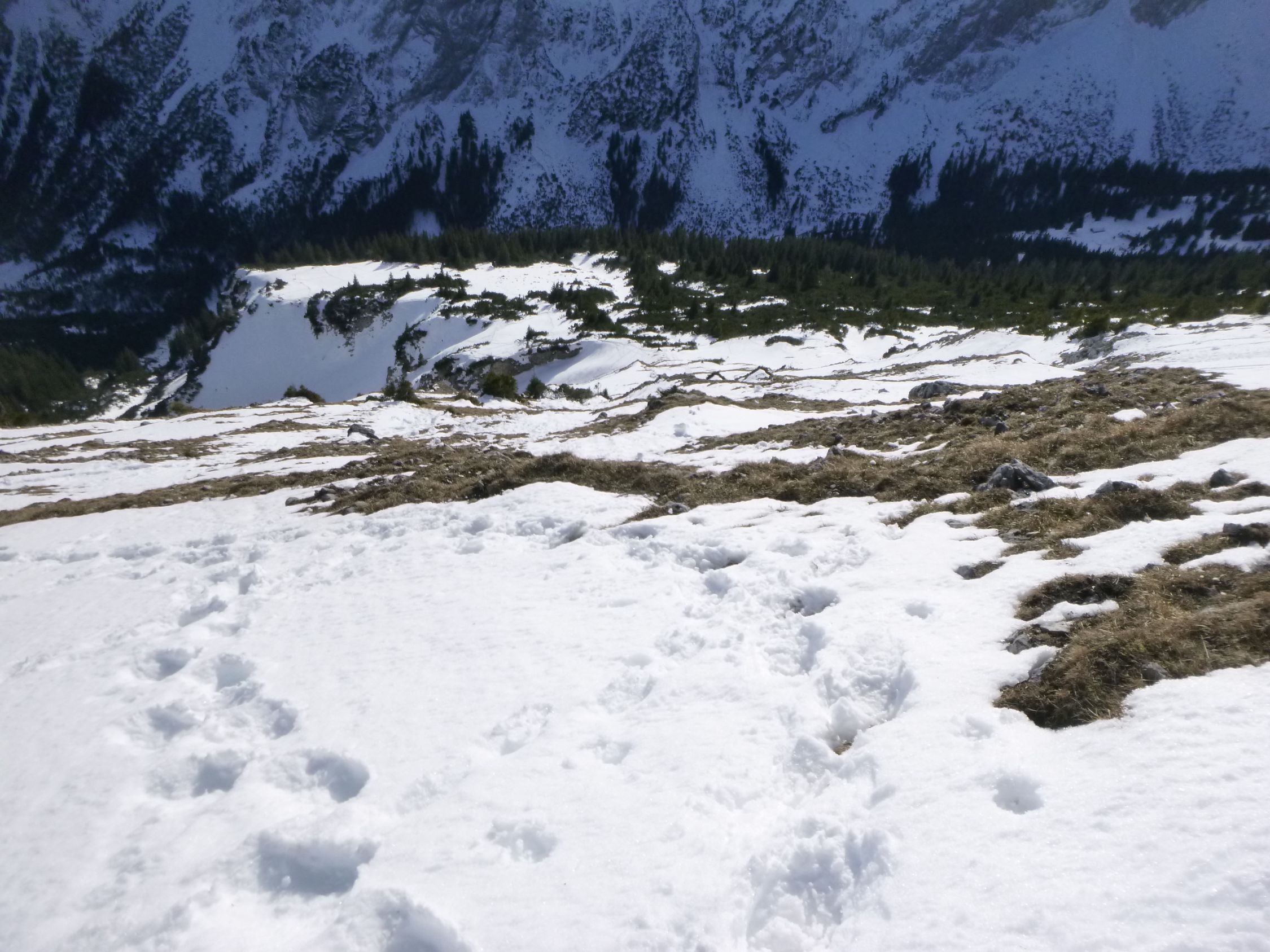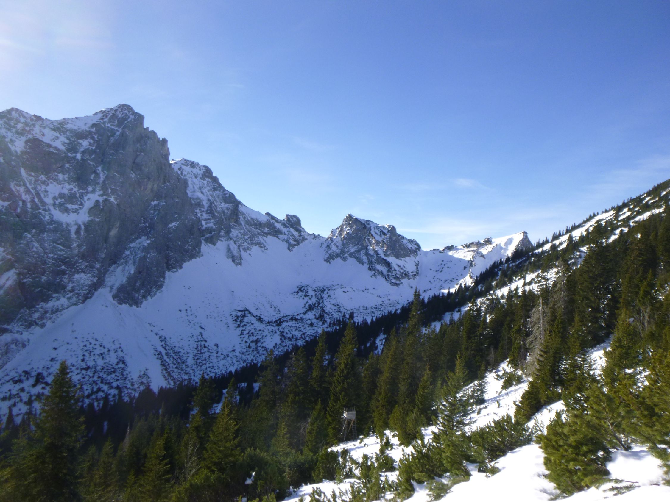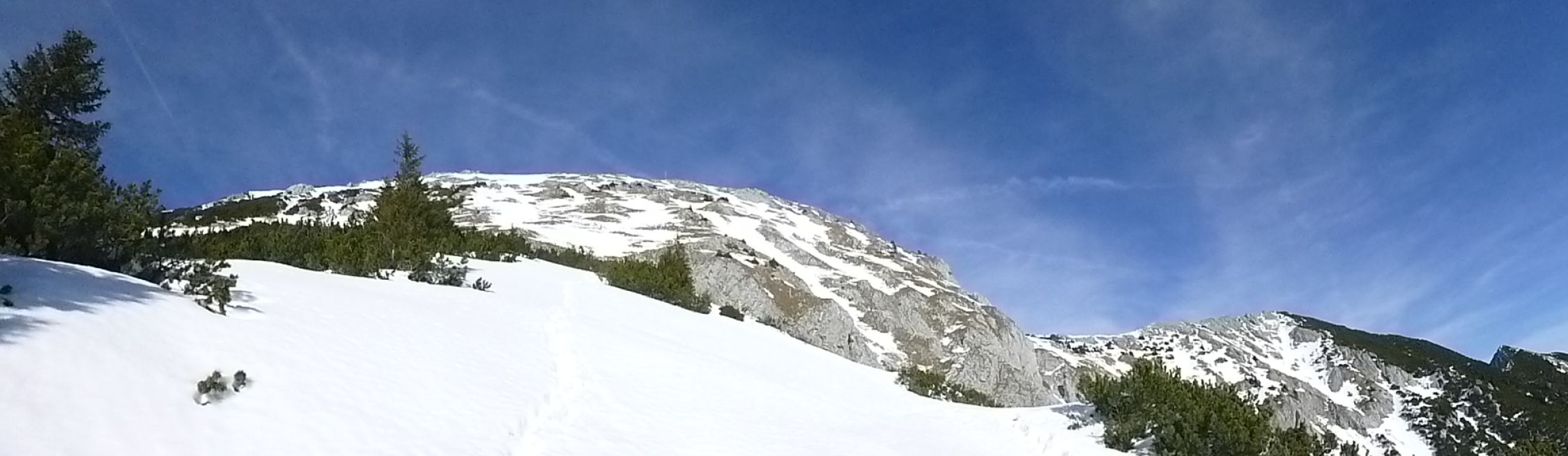 Tourenbeginn um 07:45 Uhr bei -5°C unter klarem Himmel. Im Bereich der Bärenfalle, wo keine Sonne um diese Jahreszeit hinkommt, lag noch 20 cm hoher grobkristallisierter Pulverschnee. Der Fahrweg war jedoch geräumt, so dass man bis zum Abzweig des Forstweges Judengräber ohne Schneeschuhe laufen konnte. Von der Otto-Mayr-Hütte gab es eine Spur von 2 Personen mit Steigeisen, jedoch ohne Teleskopstöcke bis zum Gipfel rauf und wieder hinab entlang des Sommerweges von gestern, oder vorgestern. Auf dem Rückweg traf ich auf eine Schneescooter-Spur vom Förster ab der Wild-Fütterung.