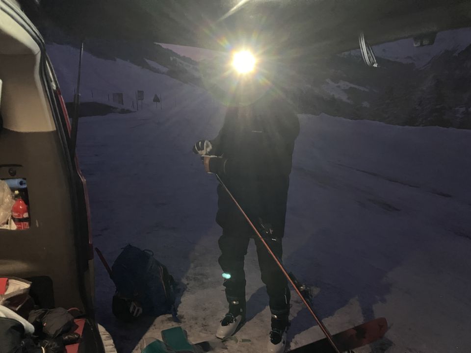 Bester Pulver ? und geniale Verhältnisse bis und vom Skidepot. Gipfelanstieg ohne Steigeisen machbar, Pickel war angenehm.