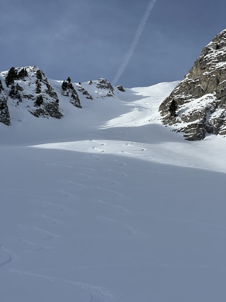 Start um 8h30 bei -13 Grad. Sehr viele Leute im Gebiet unterwegs, an der Märe Ostflanke waren wir allerding alleine unterwegs. Anstrengende Spurarbeit von Seeberg bis zum Gipfel. Es hat zum Teil etwas Triebschnee, vorallem an den voll N-seitigen Stellen. Dieser war aber ganz und gar nicht auslösefreudig. Mit schlauer Spur sind wir bis hoch zum Gipfel. Super Pulver, Märe es ist immer wieder schön bei dir!!