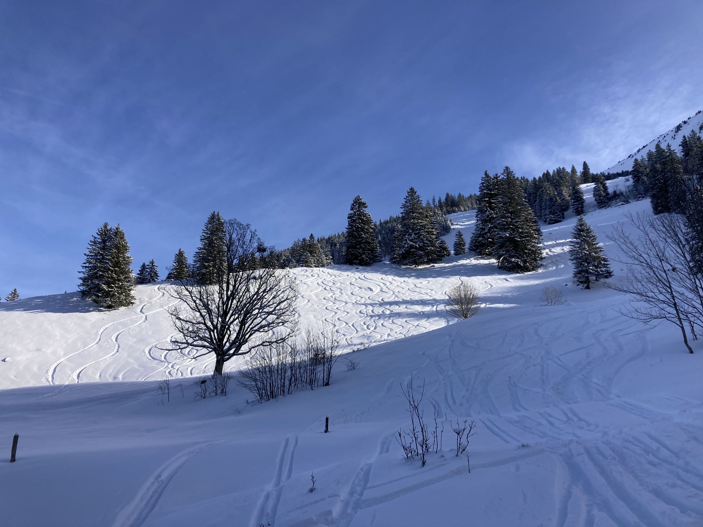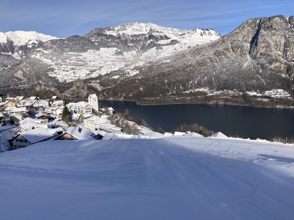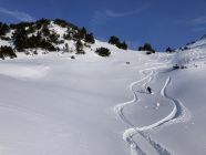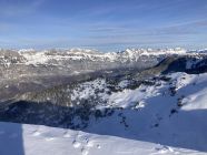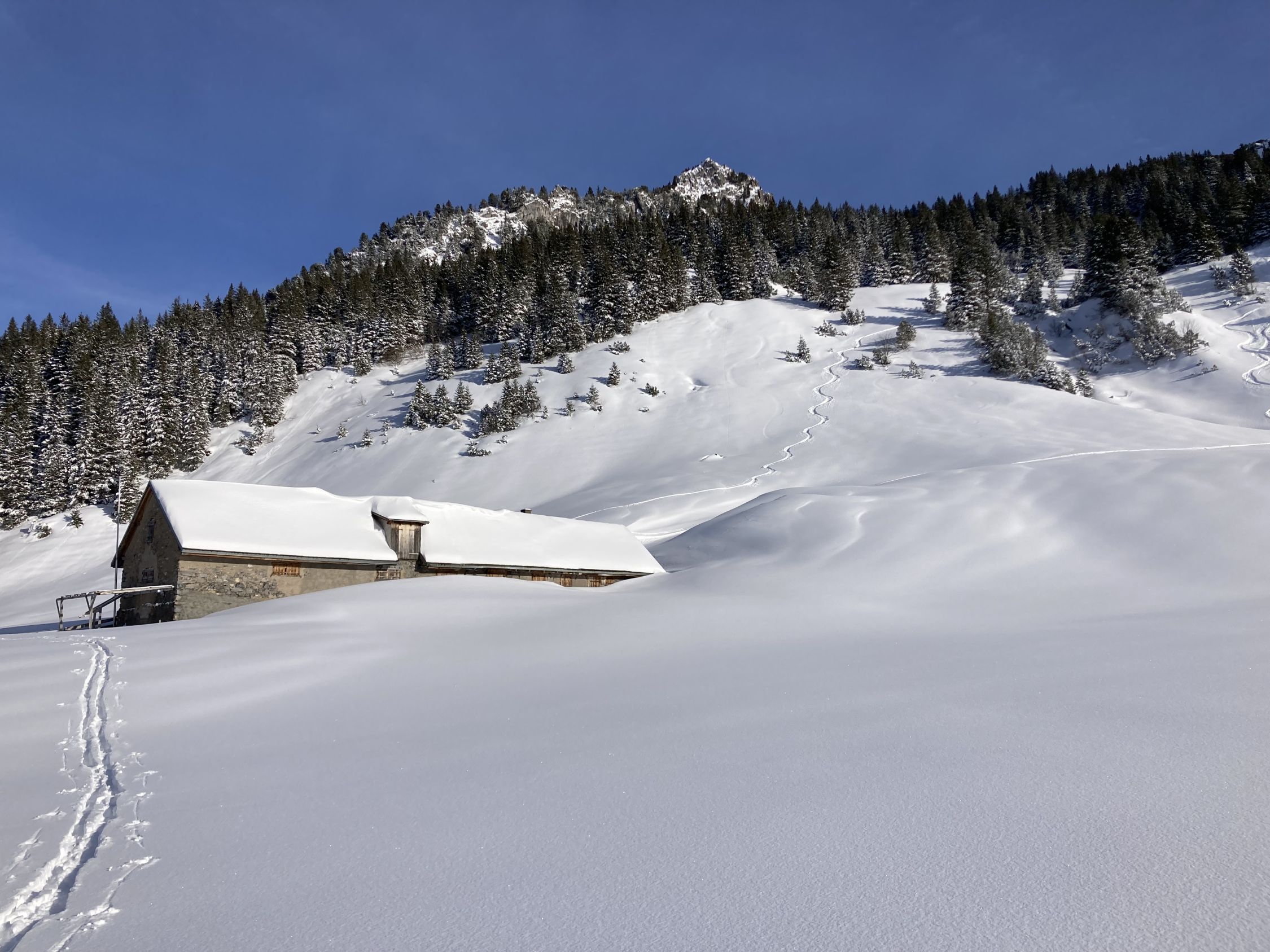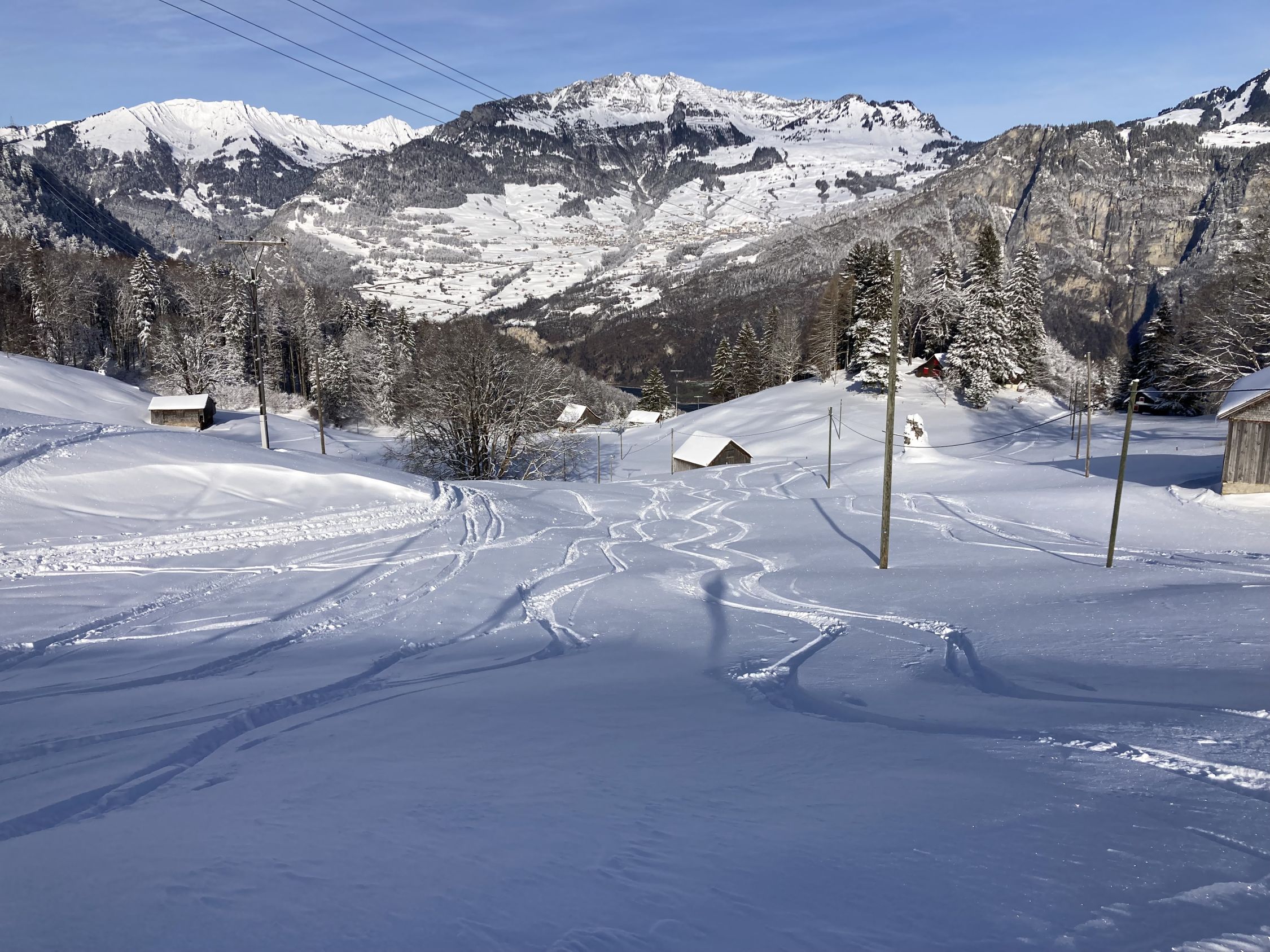 Von Ostalden weg genügend Schnee auf tragender Unterlage. Der Rücken ab Robemn zum Gipfel stellenweise abgeblasen bzw. mit einer Windharschkruste. Der Nordhang für die Abfahrt Richtung Mühlehorn war schon gut eingespurt.
