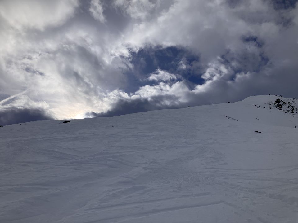 Passable Sichten und schöner weicher Schnee in der Abfahrt. Erwärmung hat nicht gestört. Relativ viel Schnee im Vergleich zur Umgebung.