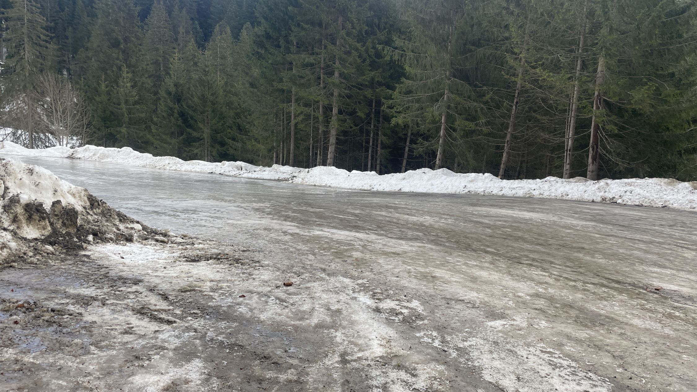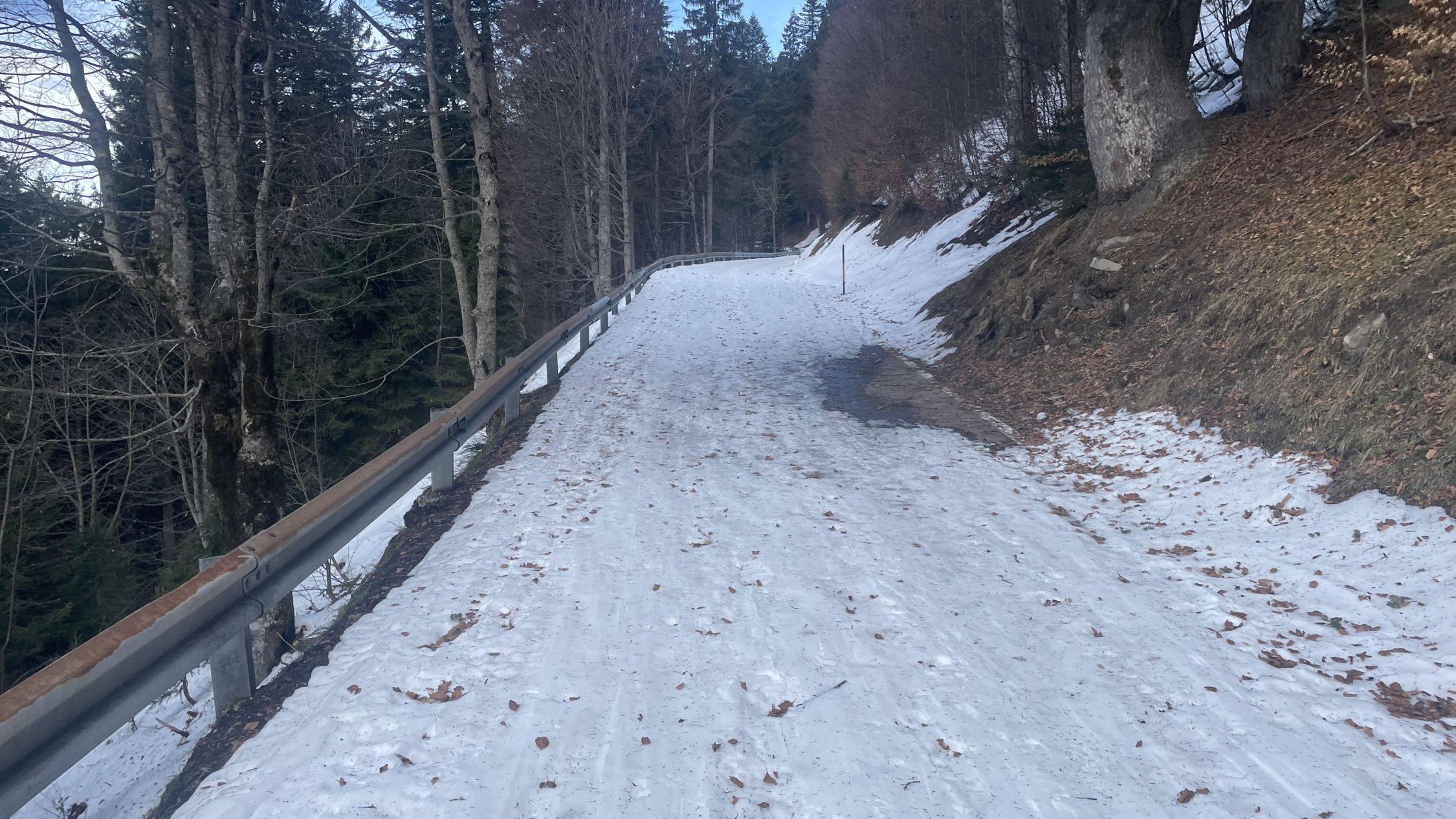 Strasse war durchwegs ab Bad Laterns schneebedeckt. Schnee überall nass und schwer.