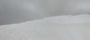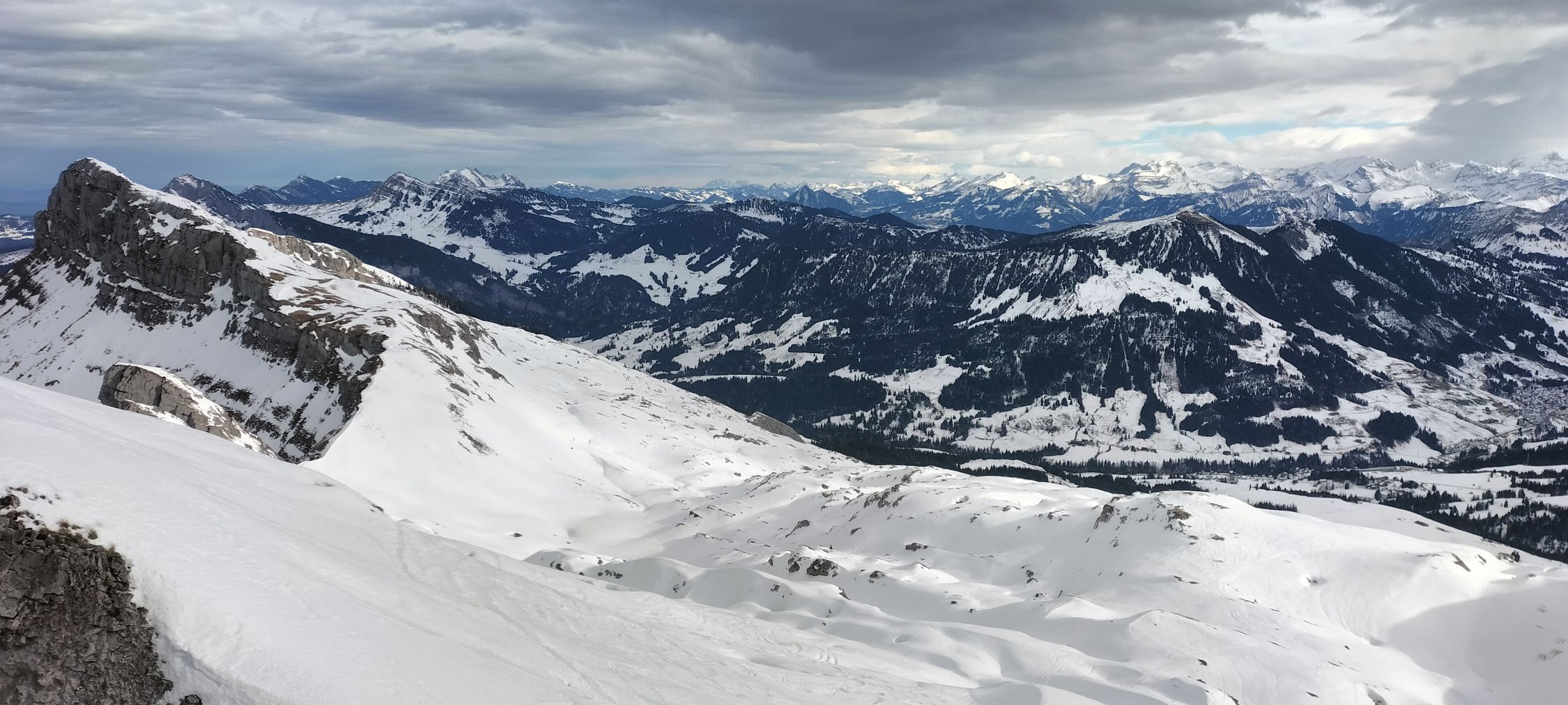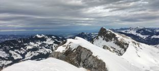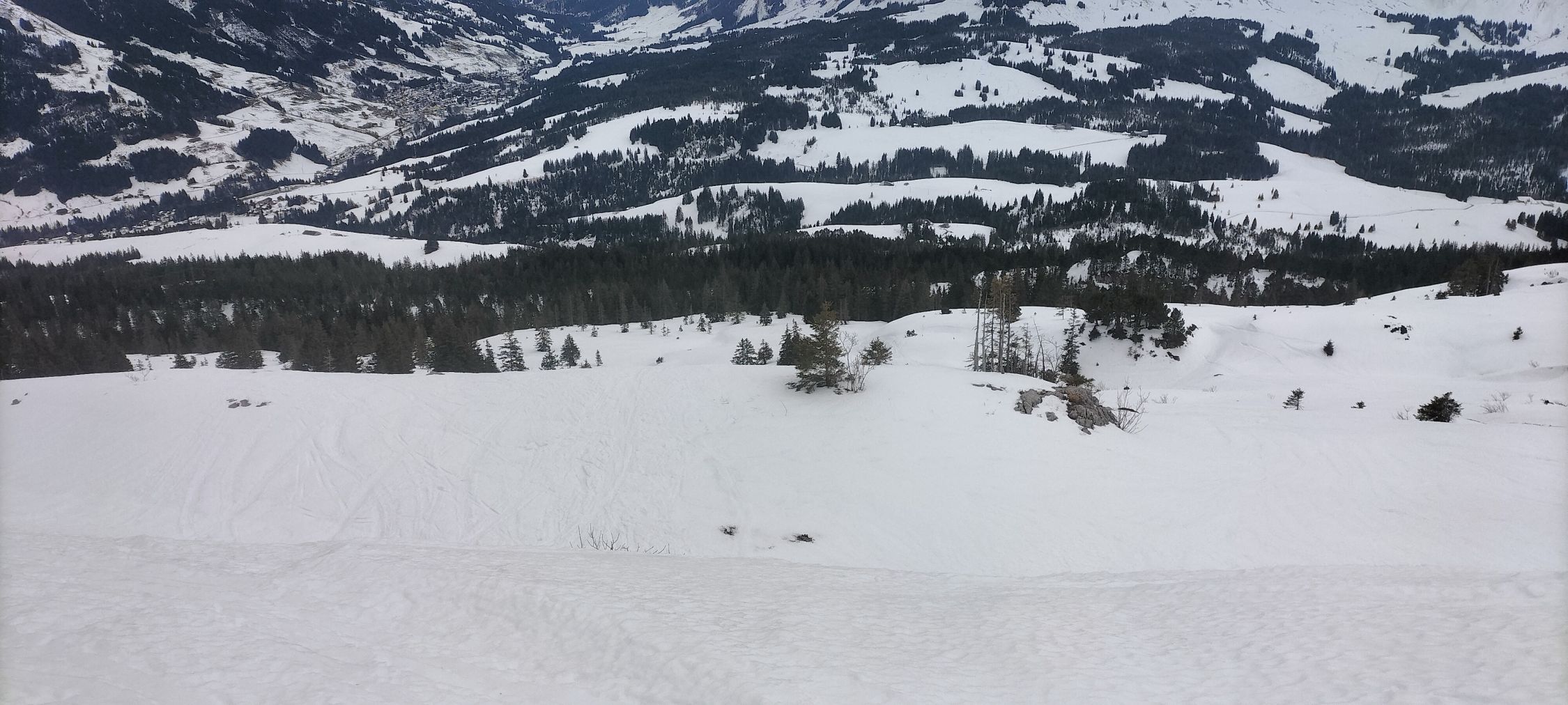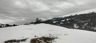 Später Tourenstart am 10.30 Uhr. bei der Hirsegg, das Wetter bedeckt + 4 Grad, bei einer starken Föhnlage, unten noch knapp genügend Schnee, weiter oben dann mehr Schnee, wobei viele Ecken wie auch die Löcher der Karstlandschaft noch eher schlecht Eingeschneit sind, der Aufstieg war aber sehr gut, die letzten Meter zum Gipfel noch zu Fuss ,nur ganz oben war der Wind leicht aktiv, die Abfahrt heute nicht gerade der Hit.