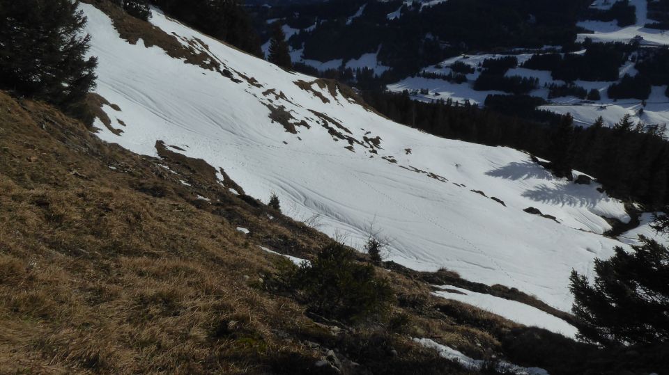 Unerwartetes freundliches Wetter heute und darum kurzfristig genutzt. Der Umstand dass die Mittagbahn diese Woche nicht läuft bewirkte, dass ich heute auch oben niemand gesichtet habe (Rarität). Der Anstieg war sehr wechselhaft. Unten Mossackerweg total vereist, Hohlweg aper, danach wechselnd bis oberhalb Dürrehorn. Nach Abzweig (Unterkirche) zunehmend Spurarbeit in z.T. tiefen, nassen Schnee, aber auch immer wieder apere Stellen. Bin über Viehtrieb zur Grathöfle und über Ostsporn direkt zum Hauptgipfel. Abstieg wie Aufstieg. Nach 13 Uhr trübte es von Westen langsam ein, kam aber trocken runter.