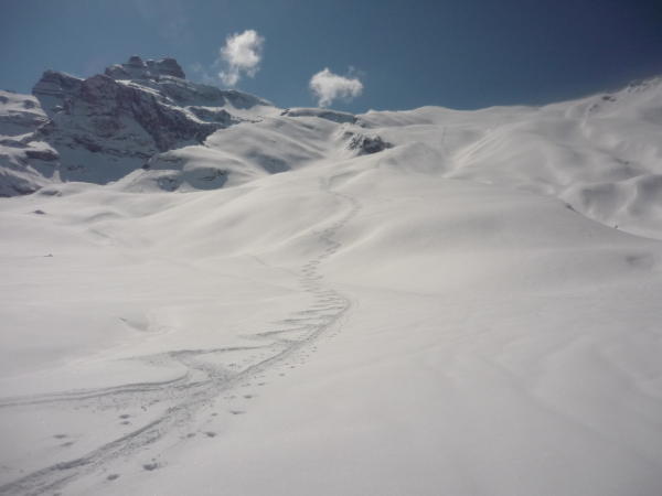 Abfahrt heute ganzer Hohtürlihang 5 bis 15 cm frischer Pulverschnee.Ab Bundalp übergehend in schönen Sulz auf tragender Unterlage.