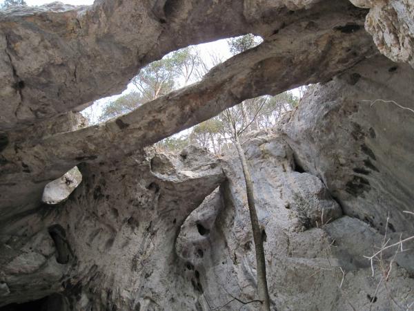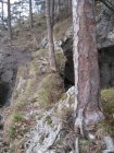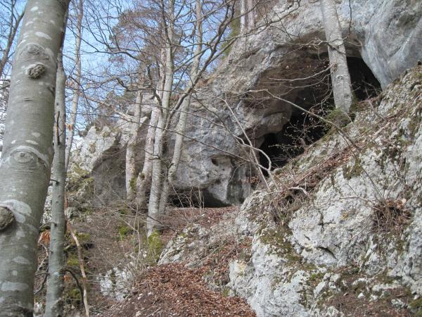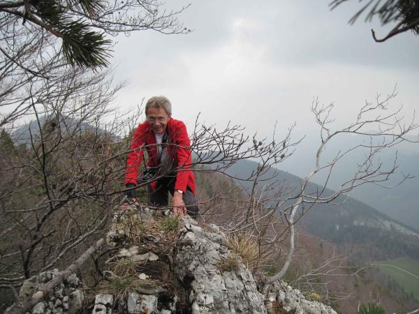 Heute wollten wir es wissen.. so sind wir bei der Bushaltestelle Wolfsschlucht 610 m losmarschiert. Die Wolfschlucht alleine ist bereits einen Besuch wert, imposant ihr ganzer Verlauf. Auf schönem Wanderweg erreichen wir genüsslich den Lochboden. Bevor die Forststrasse in den Wald führt, warnt uns eine grosse Banderole vor Holzschlag. Ein Waldarbeiter weist uns schliesslich den Weiterweg: so gehts dornig erstmal wieder runter allgemeine Richtung Stiereberg. Wir verlassen den Wald aber nicht, queren zur Waldhütte des Ornitologischen Vereins, gelangen so zum Direktaufstieg (Weg gleich westlich der Waldhütte), auf den gut ausgebauten Steig zum Bäreloch. Diese kathedralenartige Höhle mit höchst eindrücklichen Naturbrücken besuchen wir, steigen kurz zurück um ostseitig gleich wieder an Höhe zu gewinnen. Das kleine Bäreloch oder "Gitziloch" ist unser nächstes Ziel. Von diesem steigen wir westseitig, über gut gestuften Felsen (Grad I) und laubgefüllte abschüssige Pfade hoch und stehen alsbald vor der schmalsten, der von unten sichtbaren Felsbrücken (ca. 1,5 m). Nicht Schwindelfreien ist der Weiterweg hier abzuraten. Hier holt uns der hikr. "360" ein und zu dritt überqueren wir das Bäreloch, es folgen: hübsche Kraxelstellen (Grad I), laubige Passagen, im Kriechgang durch die Höhle der Holi Flue (mit Höhlenbuch), Kraxeln und Queren von laubigen Schutthalden, mit Zuhilfenahme der Hände hinauf durch das steile Laubcouloir, schlussendlich stehen wir auf dem Grat vom Hinter Brandberg. Auf gutem Weg folgen wir diesem und zu guter Letzt erfolgt die Überschreitung des höchsten Punktes 1186 des Hinter Brandberg. Nicht die Schmalheit dieses Felsenkammes ist hier die Schwierigkeit, mehr aber das Astgewühl am kleinen Grätchen. Gemütliche Mittagsrast zu dritt beim Gasthof Hinter Brandberg 1162 m (Dienstag und Mittwoch Ruhetag). Nun trennen sich die Wege.
