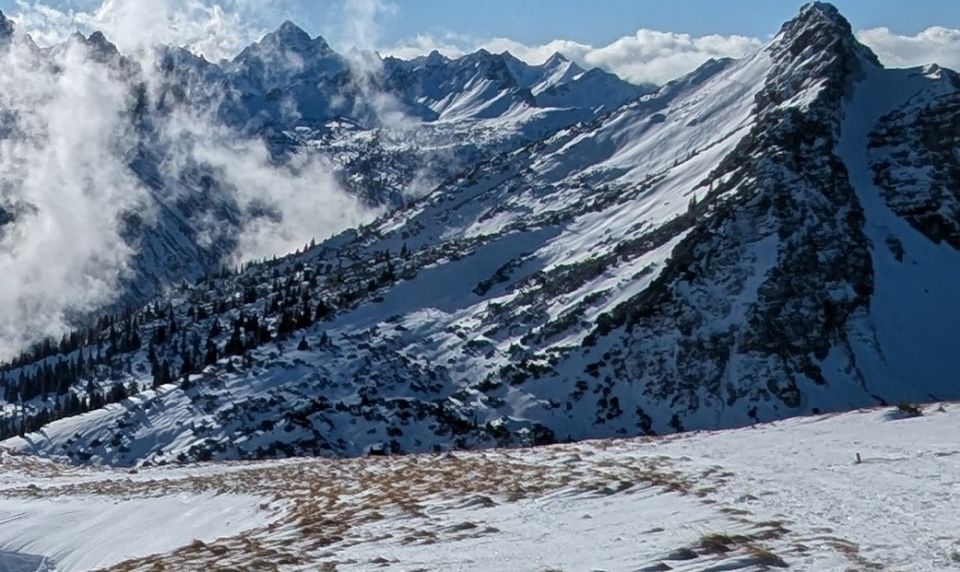Vom Parkplatz super Aufstiegsspur bis zur Krinnenalpe. Auch der übliche Skitourenspur durch den Wald sehr gut. Von der Ödenalpe bis 150 Höhenmeter unter dem Gipfel 10 cm Pulver auf hart gefrorenem Schnee. Oben sehr stark abgeblasen (wesentlch stärker als normal). Aufstieg und Abrutschen zwischen Grasbüscheln. Unten wesentlich mehr Schnee als unten. Verhältnisse am Litnisschrofen sehen wesentlich besser aus.