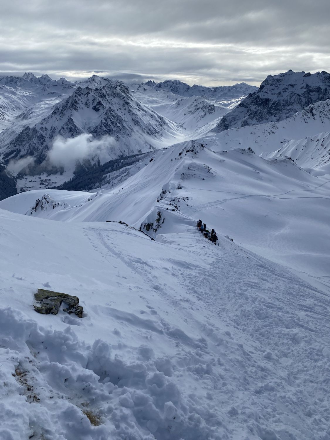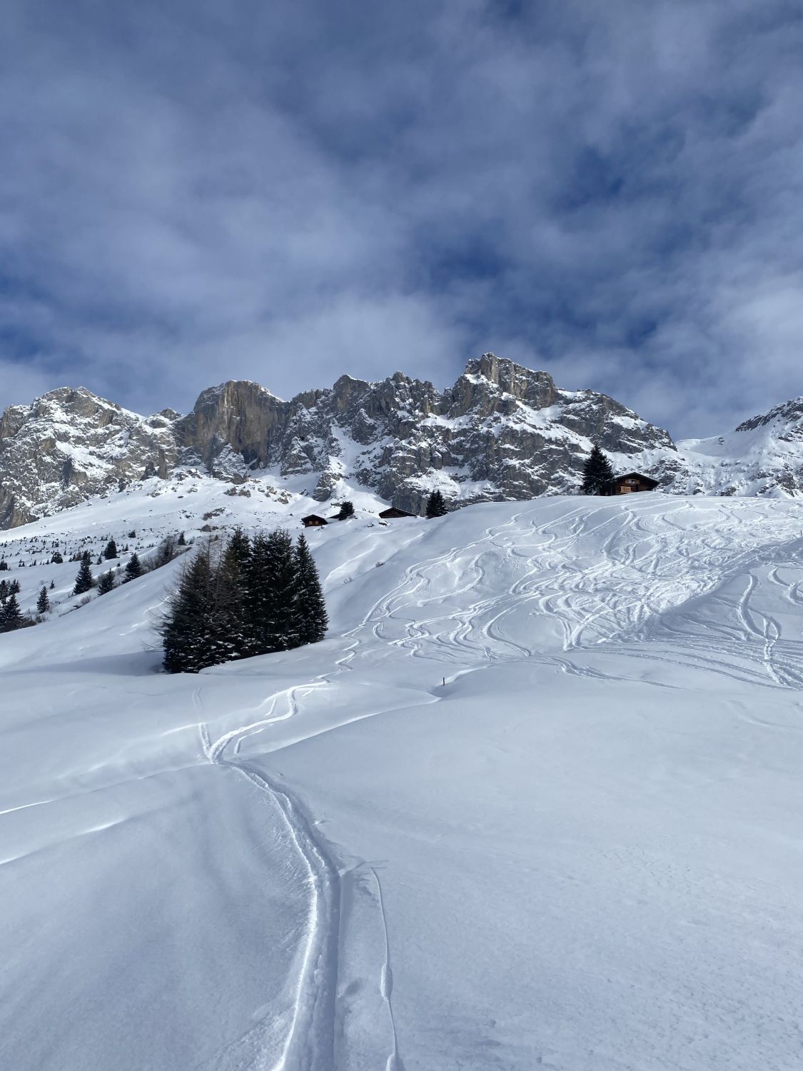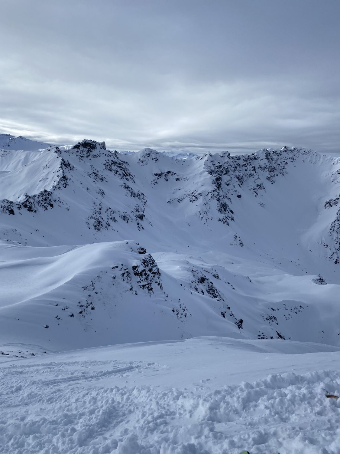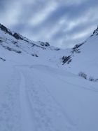 Am Ausgangspunkt minus 14 Grad und mehr Wolken als erwartet. Aufstieg Richtung St. Antönierjoch unproblematisch - hier allerdings mit ca. 15 bis 25 cm weniger Neuschneeauflage. Spur etwas ambitioniert angelegt, aber sehr gut zu gehen. Heute viele Tourengeher von Gargellen unterwegs. Abfahrt Richtung Rotspitz mit viel Neuschnee 40-50 cm und im schmalen oberen Bereich recht verspurt. Abfahrt von Rotspitz noch mit viel Möglichkeit für eigene Tiefschneeschwünge. Rotspitze ist auch von Gargellen über die Obere Röbialpe gespurt. Wolken lichteten sich während Abfahrt bei bitterkaltem Wind.