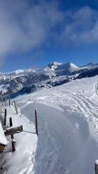 Die paar Zentimeter Neuschnee haben anscheinend Wunder gewirkt. Alles ohne Feindkontakt. Strasse gut eingeschneit und auch im oberen und Gipeflteil alles OK. Mit ein bisschen Vorsicht kann man auch noch neben den neuen Spuren schönen Pulver finden. Alles in allem besser als erwartet. Nur 2 Fotos da altes Tel in der Kälte den Geist aufgegeben hat.