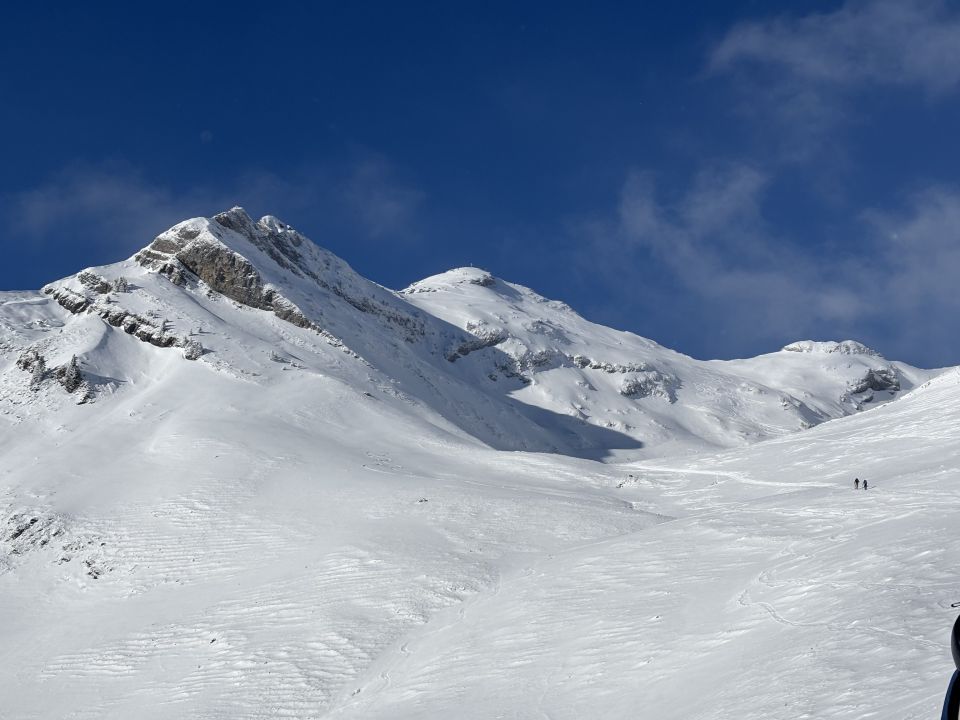 Für den Aufstieg haben wir heute die Route via Unt. Hirschwendiberg / Schneebärgli gewählt. Da gab es morgens bereits ein paar apere Stellen im Wald oder an Bachläufen. Für die Abfahrt würden wir diese Route nicht empfehlen, weil der Schnee an diesen Sonnenhängen schon stark dezimiert wurde.