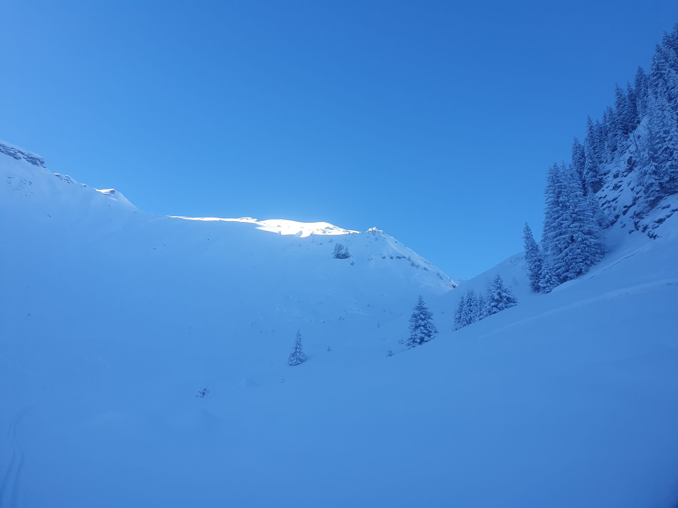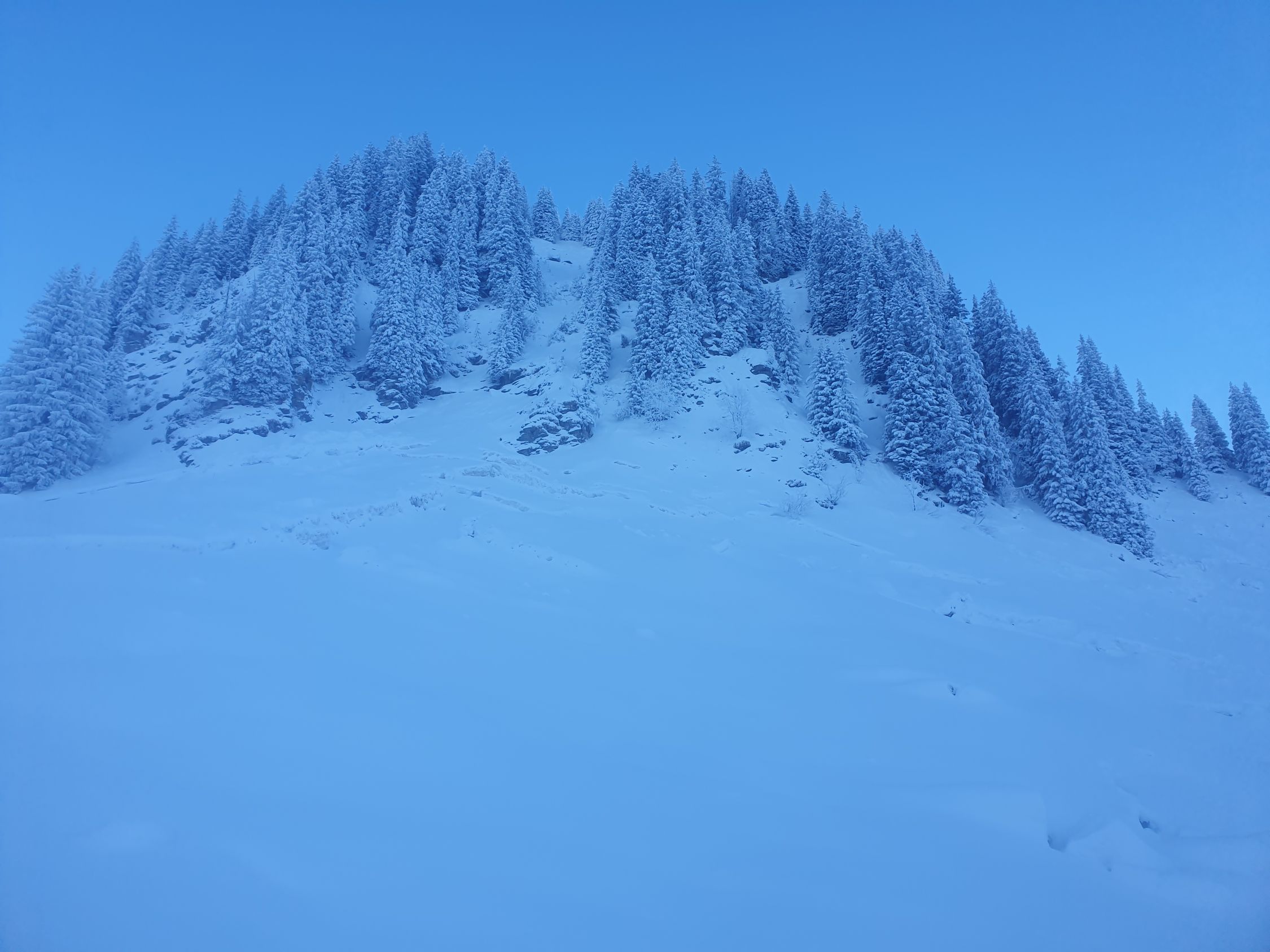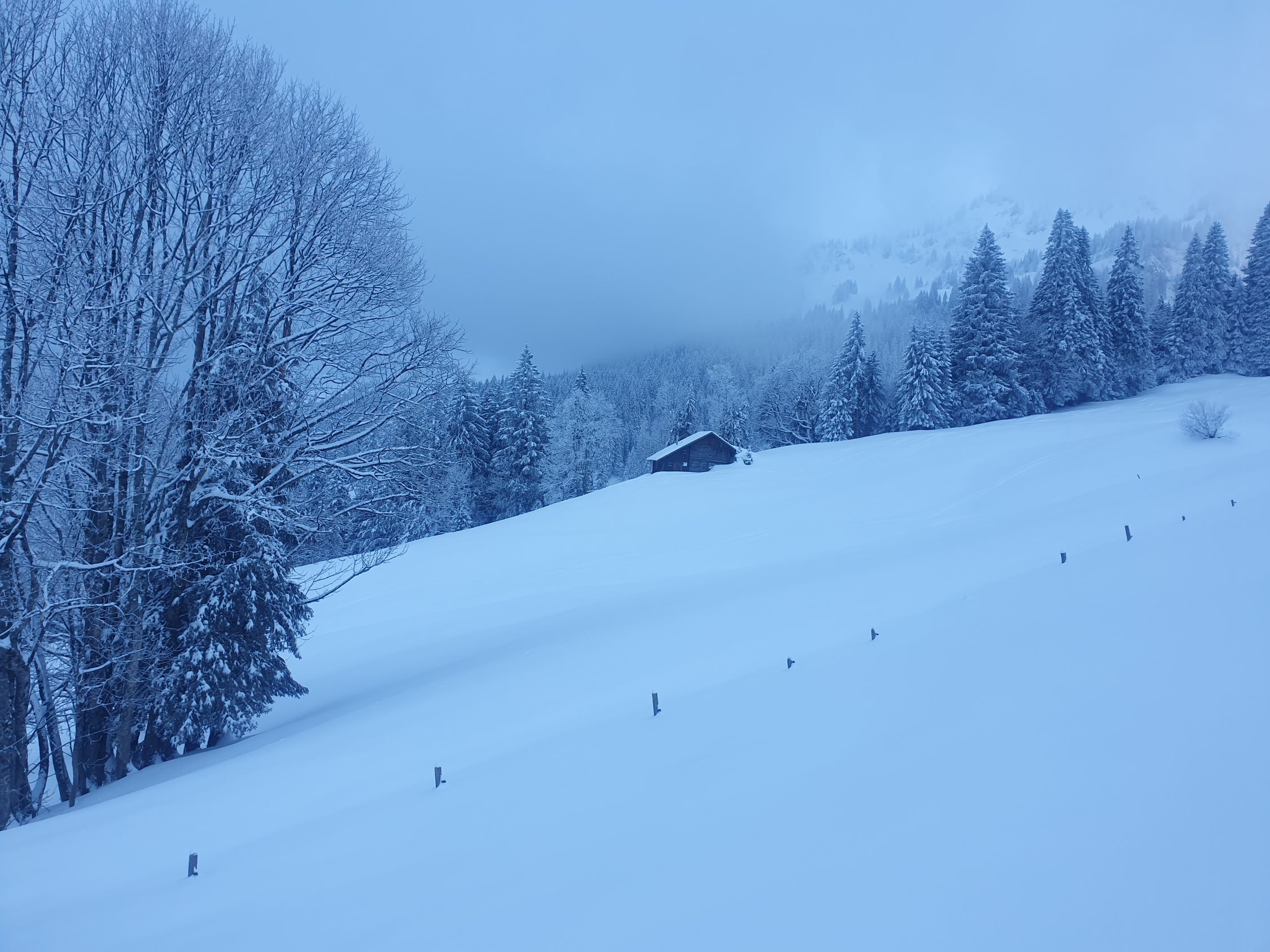 Oben Gras etwas rutschig und Nebel war bis ca. 80 Meter unter Gipfel