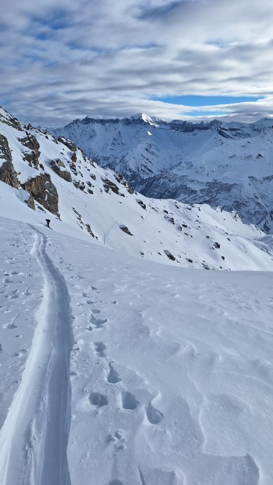 Die gewählte Abfahrtvariante lässt sich aktuell und noch für ein paar Tage befahren, also so lange, wie die Temperaturen tief bleiben. Die Hänge sind nahezu unverfahren, da nur wenige TourengängerInnen diese Route wählen. An dieser Stelle sei aber jedem und jeder von dieser Route abzuraten, wenn er oder sie sich nicht ganz sicher sind, dass die Lawinensituation es erlaubt. Insbesondere die Abfahrt über die Fruttblanggen muss richtig eingeschätzt werden.