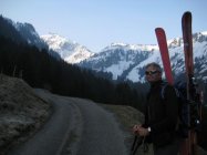 Der Aufstieg begann in Buchboden mit einem Fußmarsch Richtung Klesenzaalpe von ca. 1h 20min bis wir die Schier anschnallen konnten. Vorbei an der Klesenzaalpe ging es zur Alpe Spitzegga. Dort folgten wir den NO-ausgerichteten Flanken zu den steilen Rinnen unter dem Gletscher der Roten Wand. Wie eine Talsperre stellte sich die senkrechte Wand unter dem Gletscher uns entgegen. Wir brechen da auf Höhe 2.510m ab und queren zum "Ersatzgipfel" Rothorn (2.357m). Dann steigen wir die Nord ausgerichteten Flanken zum "RILL-WILL-Hörnle" (unsere Namensgebung) auf (2.595m). Vor hier hatten wir traumhafte Abfahrtsbedingungen bis zur Klesenzaalpe (oben Pulver unten Firn). Dann traten wir wieder den langen Rückmarsch an.
