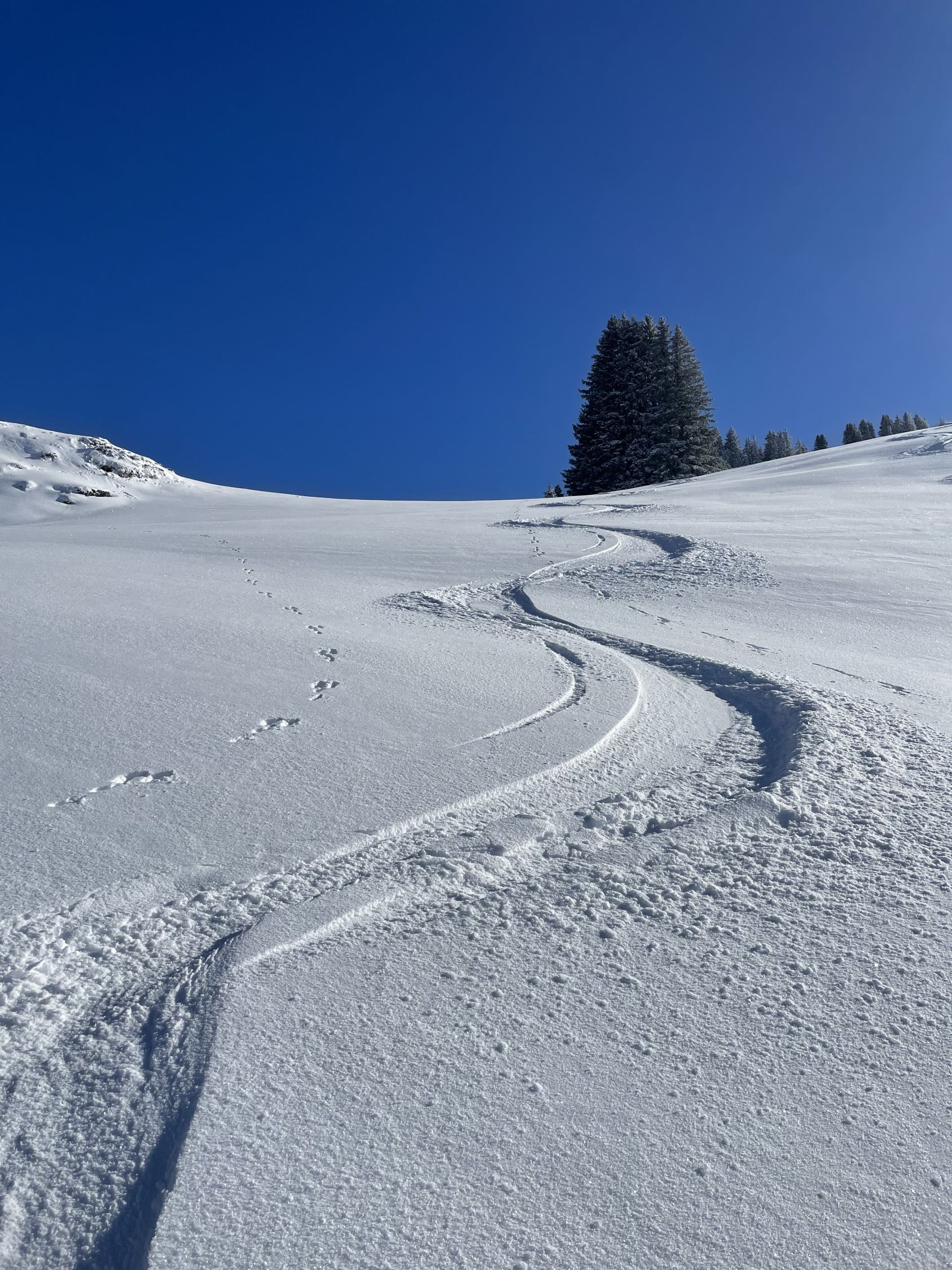 Heute reichte die Zeit für eine kurze Tour, und ich startete bei -12 im Meniggrund. Da ich gestern auf dem Stand war, gings heute in die andere Richtung. Entscheid für den Puur fiel spontan, Gestelegrat wurde heute von zwei Kitesurfern beackert, Lueglespitz sah abgewindet aus und Niderhore reichte zeitlich nicht. Auf dem Puur war gestern niemand ganz oben, ich hatte das Gipfelchen für mich alleine. Temperatur oben angenehm und gute Fernsicht. In der Abfahrt fand ich noch viel freien Platz mit brillantem Pow, nach Obergestelen dann teils zerfahren. Rasch war ich bei der Alpstrasse und auf der im Meniggrund.