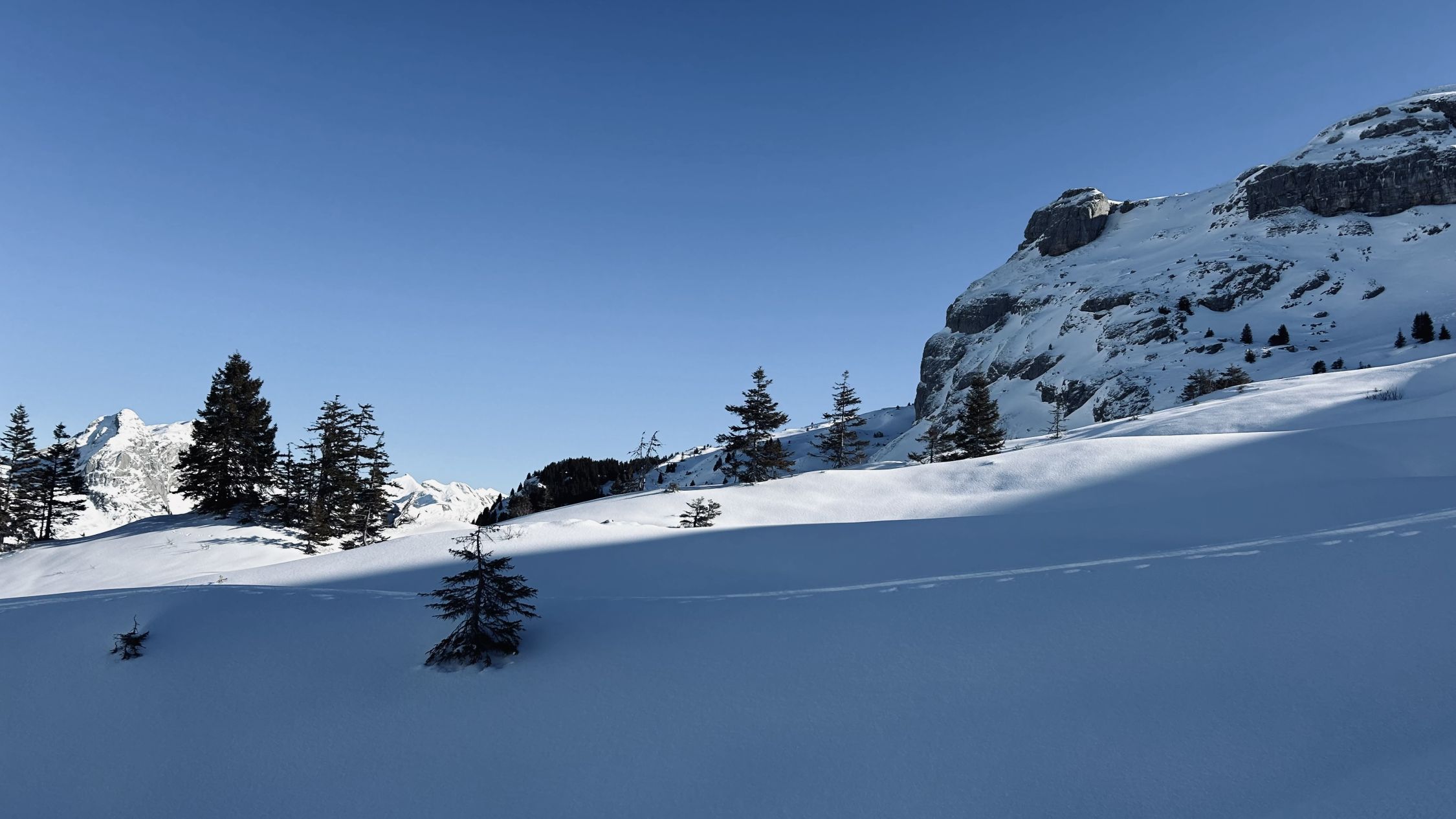 Super Wetter und beste Bedingungen. Schnee durchgehend vom Parkplatz bis zum Gipfel. Gute Spur. Achtung an einigen Stellen ist der Schnee abgeblasen, so dass die Steine nur leicht bedeckt sind, Felskontakt!
