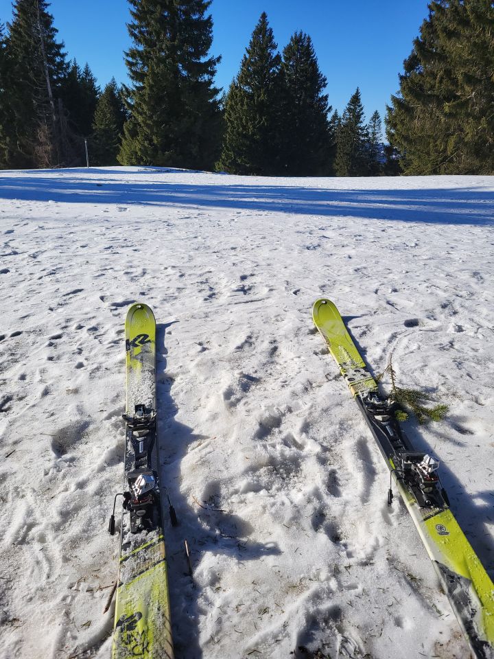 Gipfel abgeblasen, Ski die letzten Meter getragen. Abfahrt dito, Ansonsten gute Verhältnisse wenn man bedenkt dass längere Zeit kein vernünftiger Schneefall war.