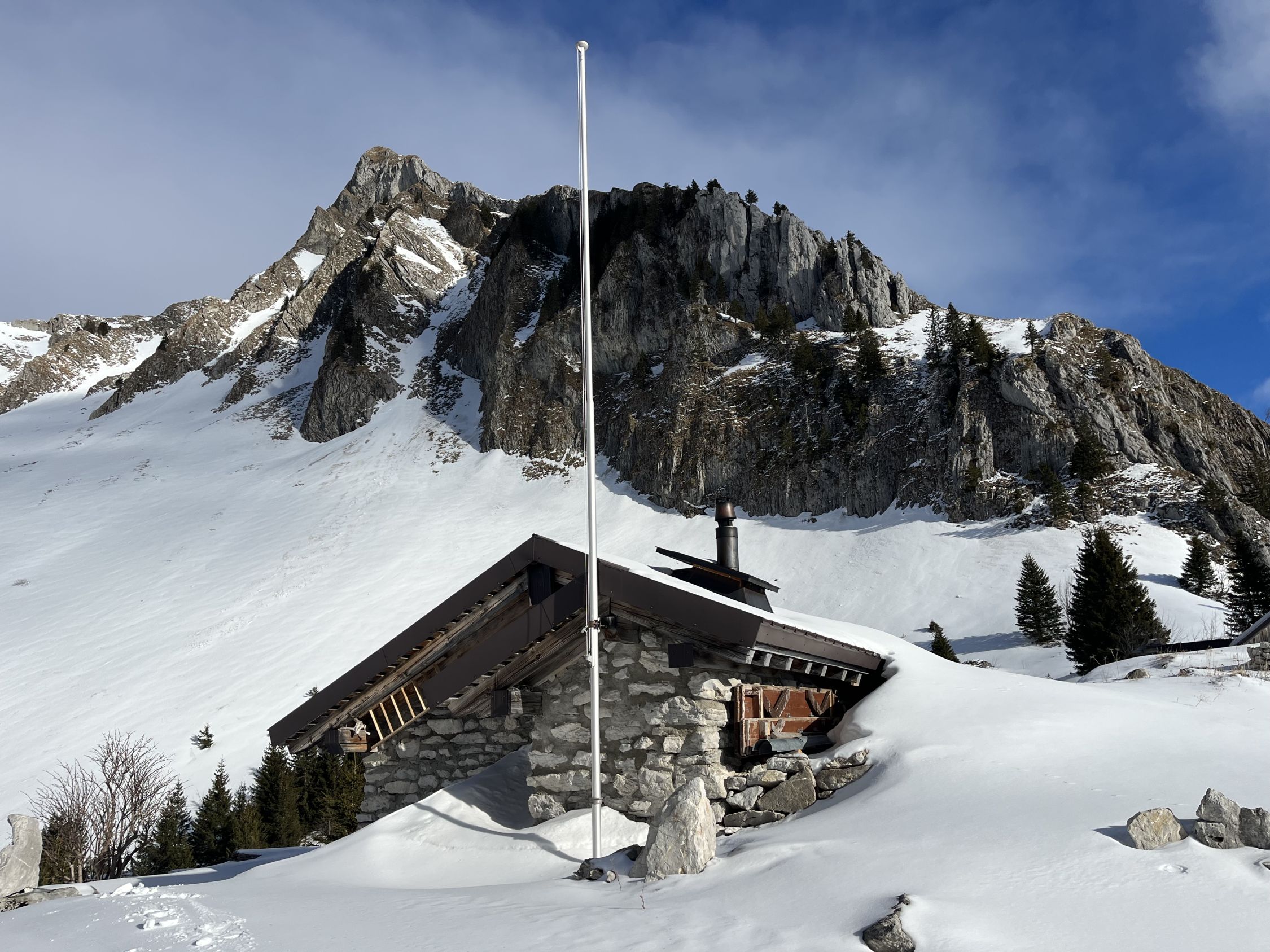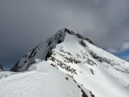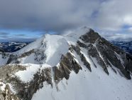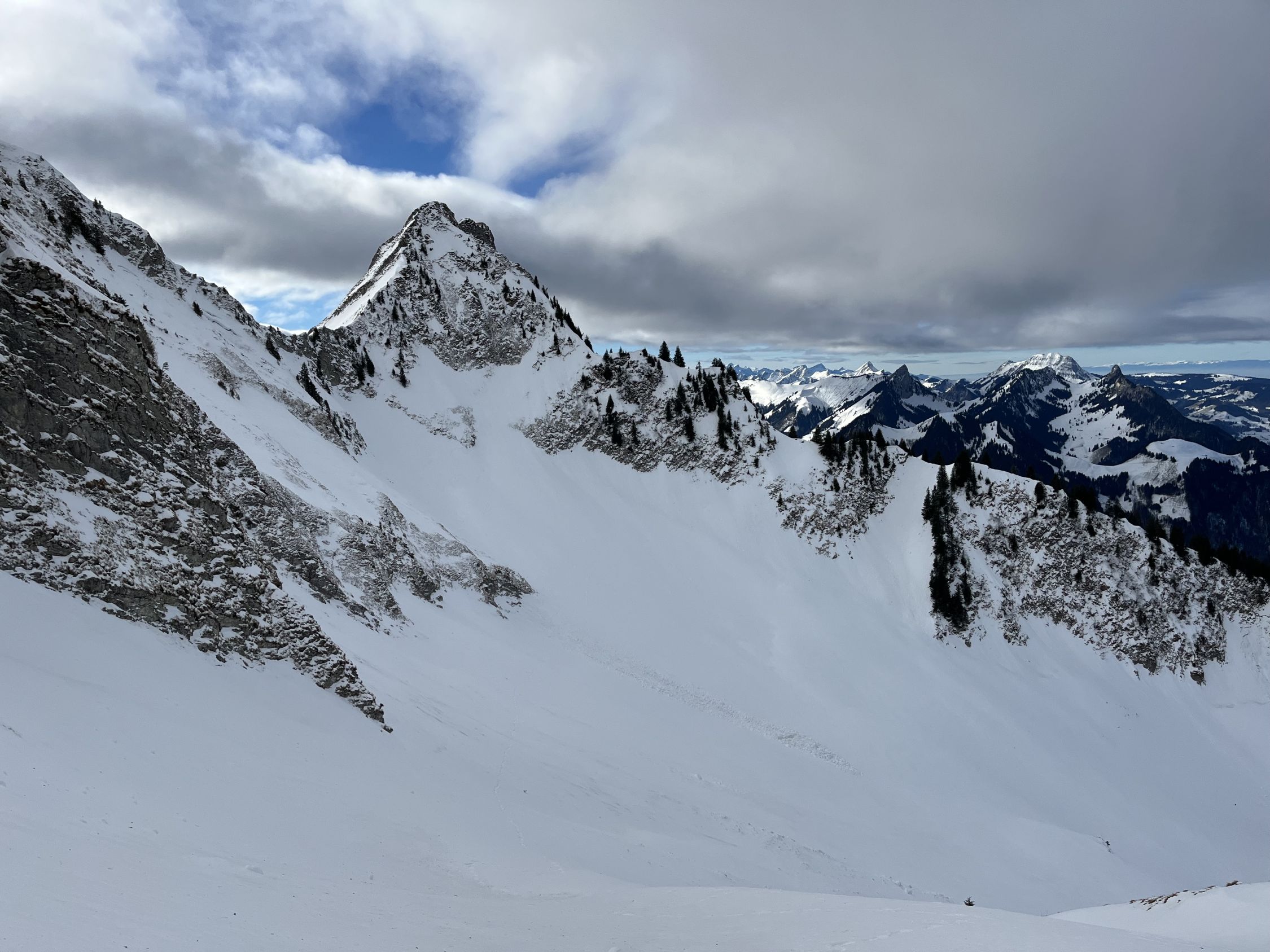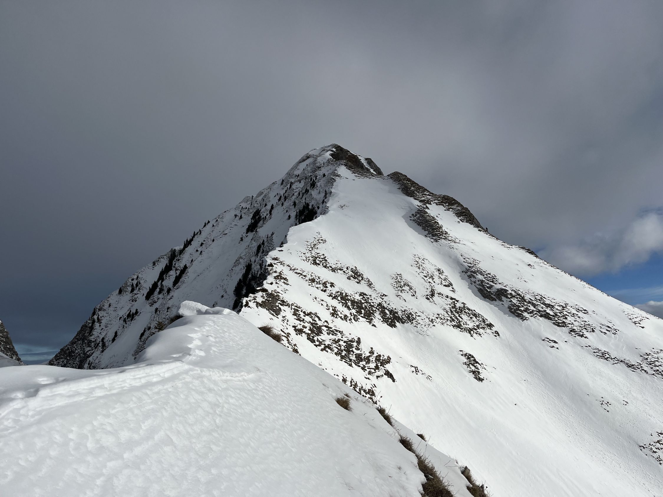 Vom Sattel 1938 auf den Weiterweg zum Gipfel verzichtet, weil aktuell arg wenig Schnee liegt. Vom Sattel 1941 ist der Aufstieg ziemlich schwierig.