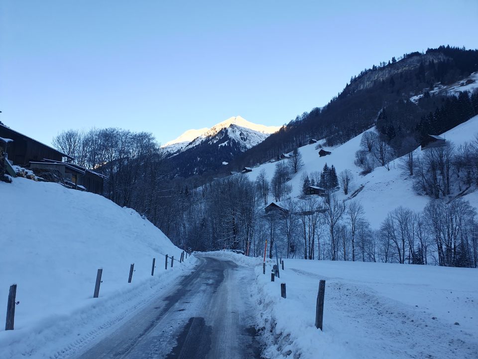 und v.a. kurz vor Wanne ist das Gelände steil und mit vielen Büschen bestückt, was ein wenig skitechnisches Fahren verlangt. Ich bin nicht der Skiroute, sondern auf dem Wanderweg südlich davon abgefahren. Hier im Wald viele apere Stellen angetroffen, wo die Skis getragen werden mussten. Weiter unten ging es wieder bis zur Strasse zu fahren. Dann auf der Strasse in 10 Min. wieder zurück zum Ausgangspunkt.