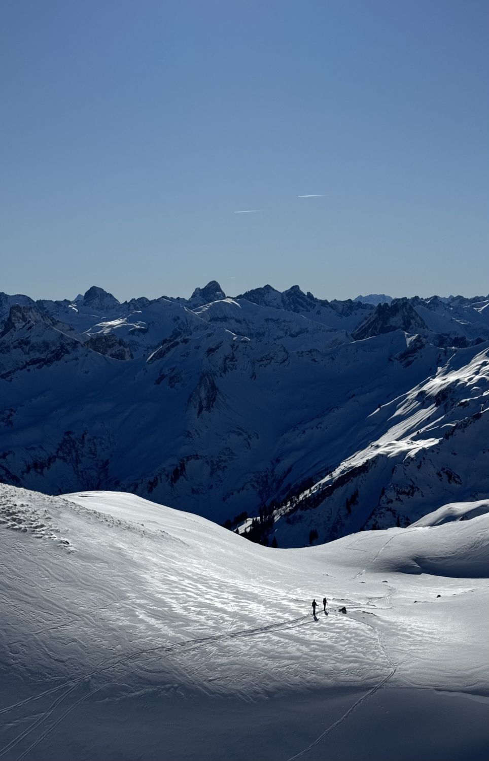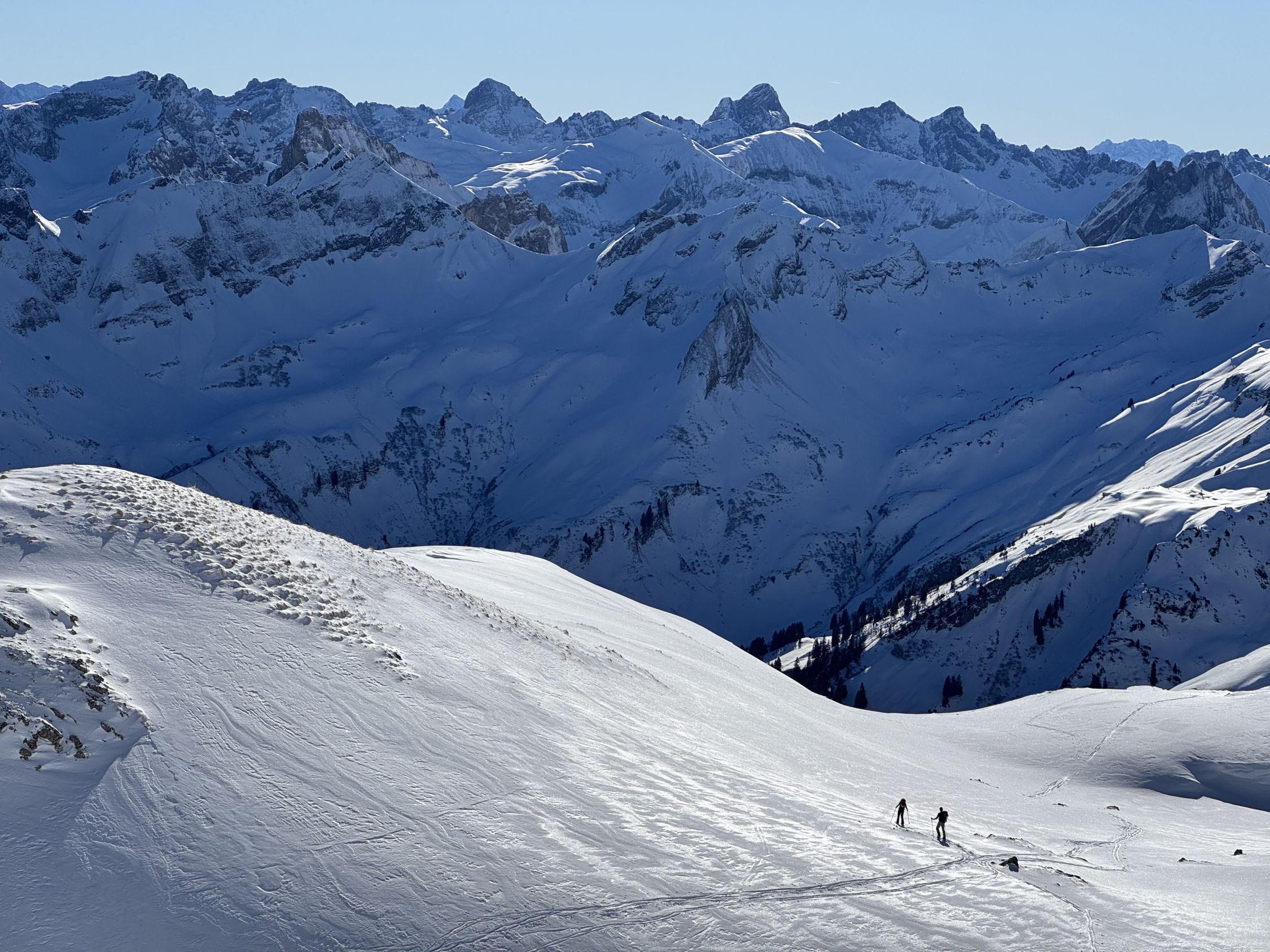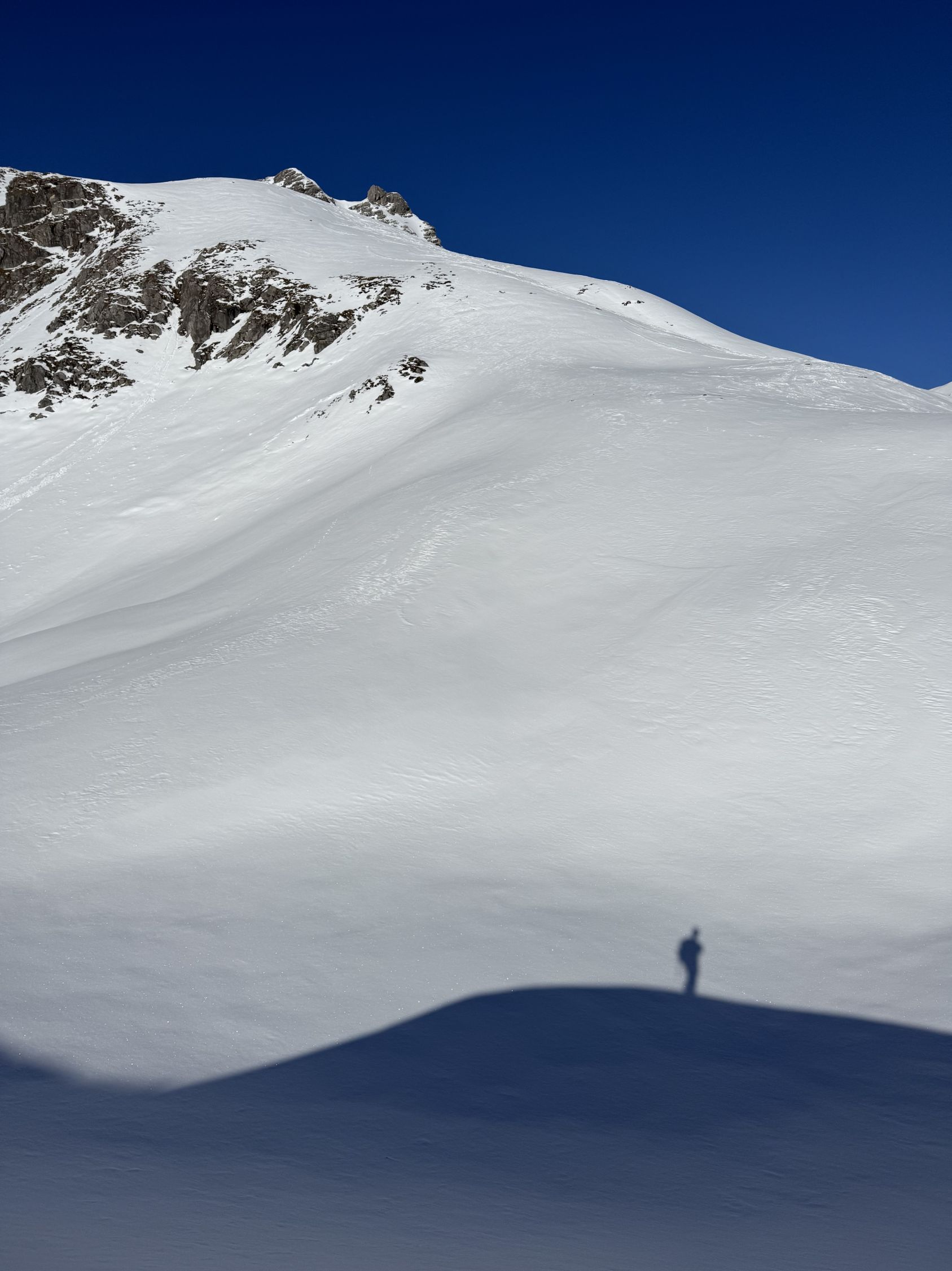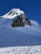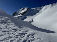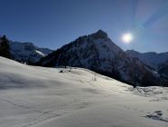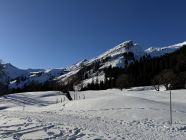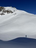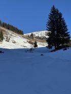 Der Hang zur Käser-Alpe apert aus. Zustieg und Abfahrt über Schwarzenberg-Hütte dürfte noch eine Weile gehen