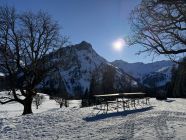 Der Windeinfluß hält sich in Grenzen. Schochen sah gut aus und der Hüttenwirt der Schwarzenberg-Hütte war auf dem Laufbacher-Eck