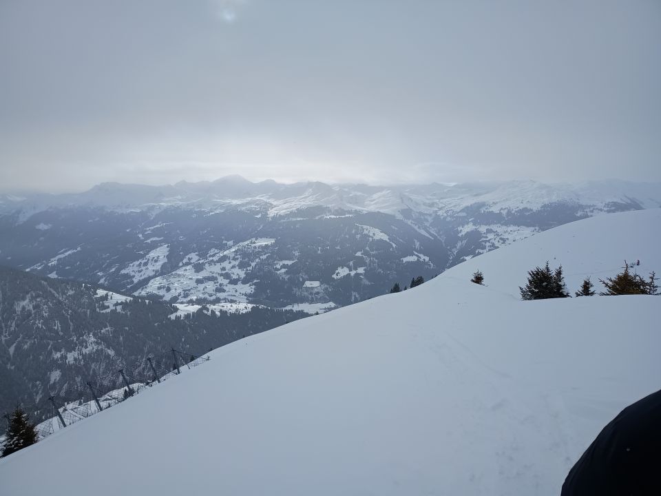 das ausgezeichnet bezieht sich auf die Hänge oberhalb der Waldgrenze . Danach totaler Bremsschnee sogar auf der Piste