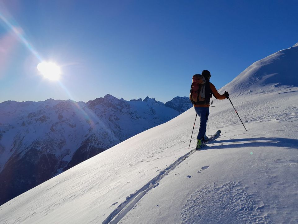 Traumhaftes einsames Panorama, wenig Leute, kaum Wind, Gipfelrast angenehm in der Sonne, haben noch Bälmeten angehängt und sind dann zum Haldi abgefahren. Hoch Fuhlen - Bälmeten waren wir die ersten in diese Richtung. Schnee oben etwas windgepresst und Richtung Haldi Querung einiger alter Lawinenkegel. Daher kein ausgezeichnet.