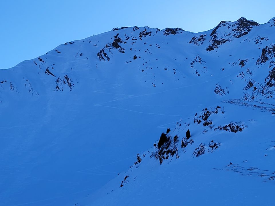 Wir haben beim Pt. 1121 nach der Chirelsagi parkiert. Der Parkplatz dort war um 9 Uhr schon ziemlich voll. Die Strasse ist gut eingeschneit. Im Aufstieg zum Gurschwald Pt. 1357 hat es wenig Schnee, der Aufstieg mit den Skis ist jedoch problemlos möglich. Auch im steileren Hang unterhalb der Alp Bütschi hat es wenig Schnee. Oberhalb der Alp Bütschi merkt man den Einfluss des Windes auf den Schnee deutlich, teilweise hat es einen leichten Deckel. Die Spur in der Nordflanke ist ziemlich steil angelegt und man rutscht deshalb oft zurück. Ich war jedoch zu faul um neu zu spuren ;-) Es ist nirgends eisig. Auf dem Nordgrat sind wir in einer guten Trittspur zu Fuss auf den Gipfel. Auf dem Gipfel war es angenehm warm in der Sonne und windstill.