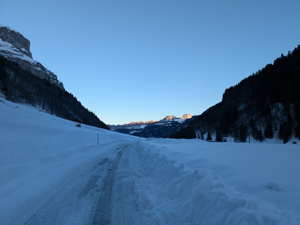 Abfahrt beim Chili Glatten mMn nicht lohnenswert da auch dort Schnee meist Windgepresst und verfrachtet. Ein paar schönere Schwünge dann weiter unten im Bereich Gwalpeten doch möglich.
