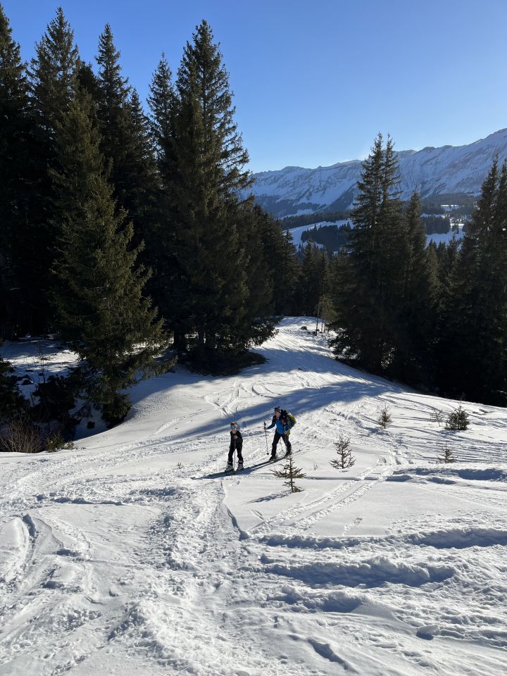 Abfahrt ging Richtung Dürrütili über teilweise unbefahrene Hänge, ein Stück durchs Wald, bis man auf die Strasse Richtung Hirsegg ankommt.