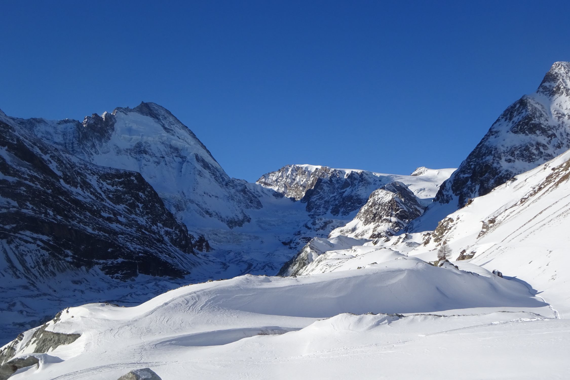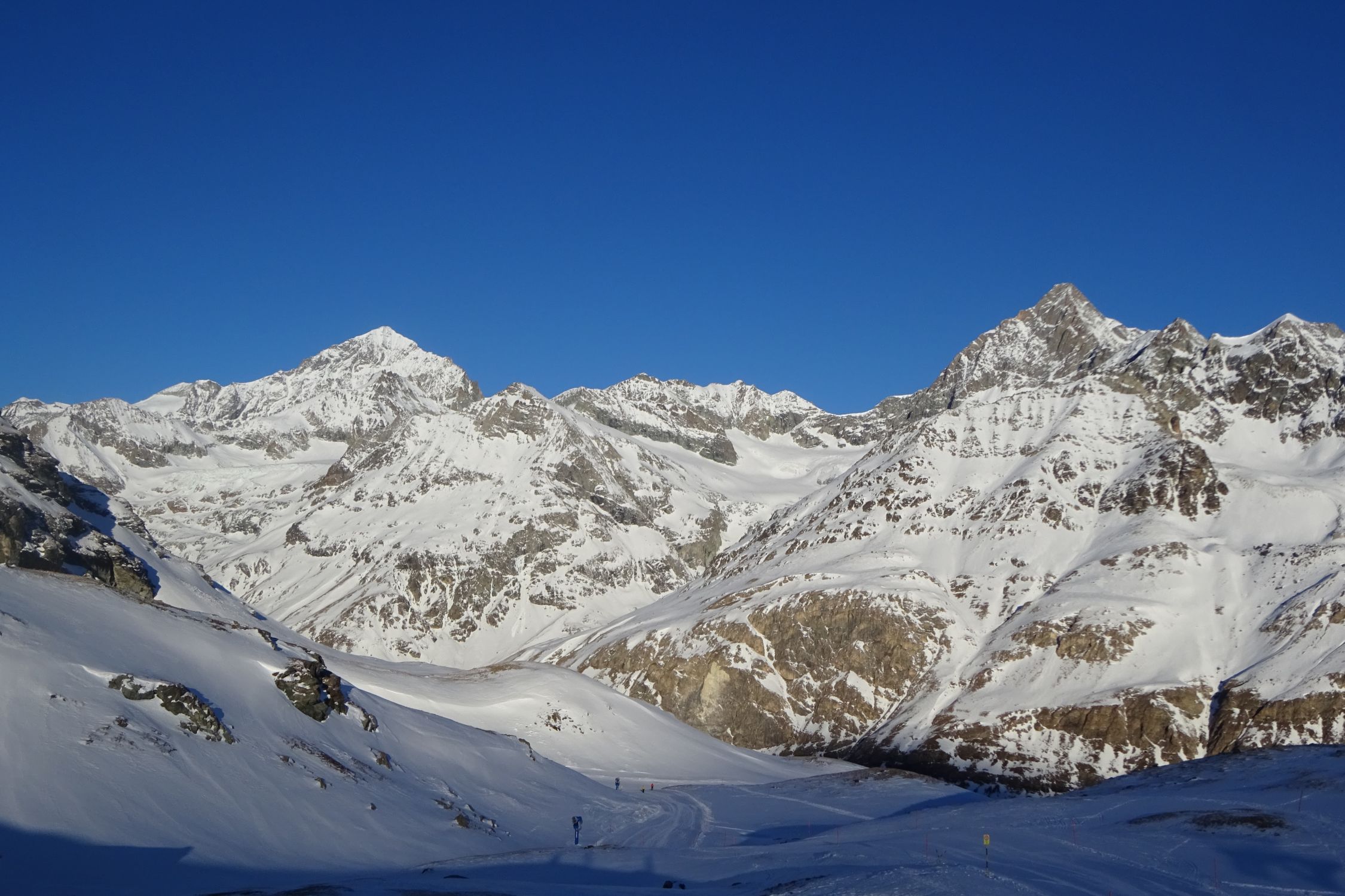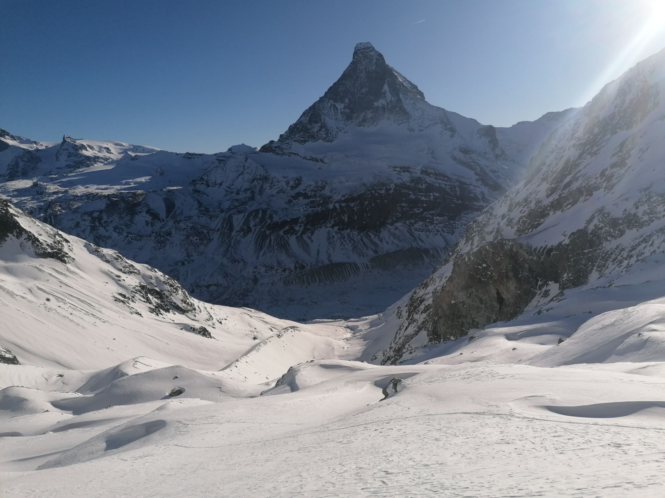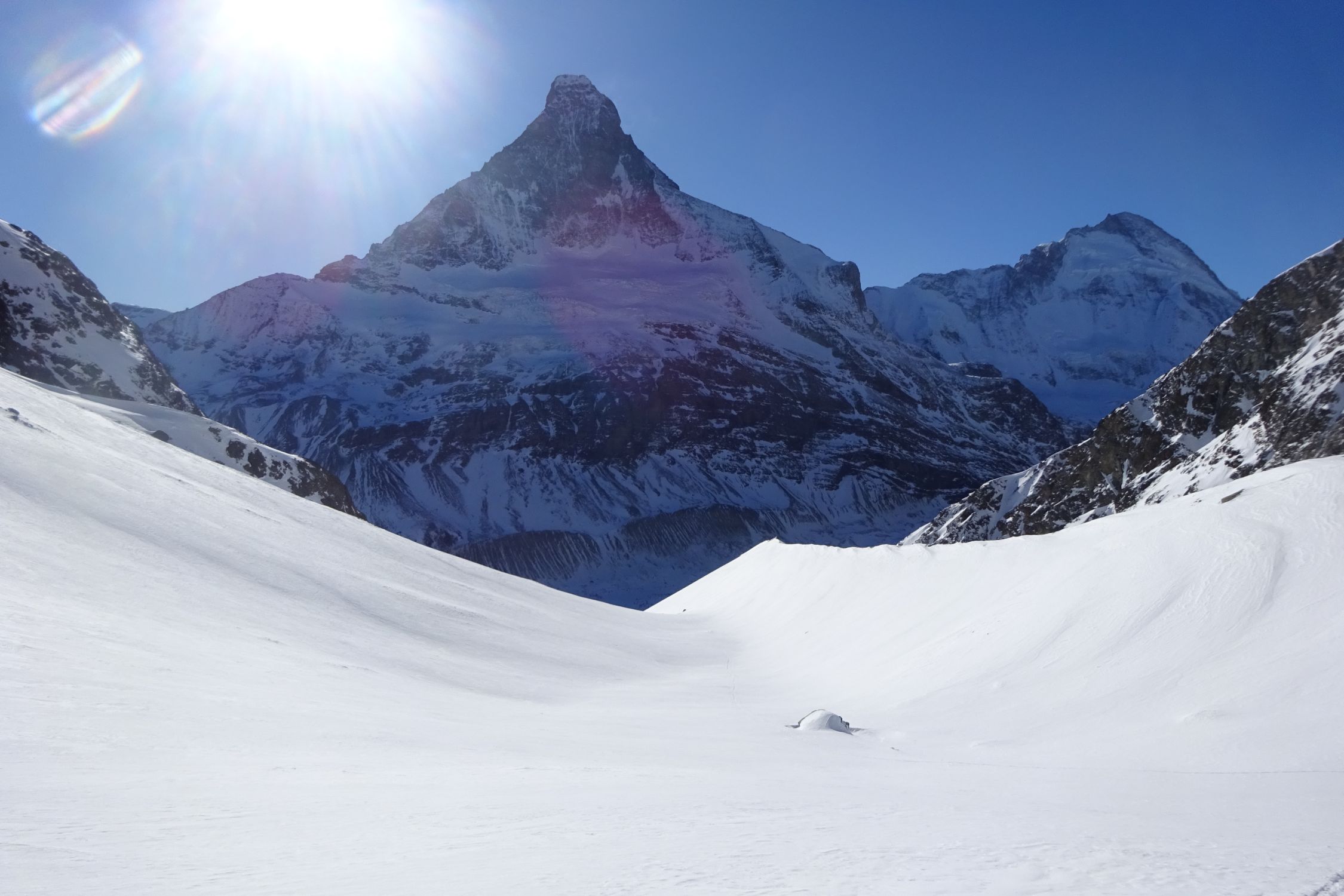 Was für eine grossartige und einsame Skitour in der Zermatter Bergwelt. Man steigt in ein wahres Berg Paradies, ein U förmiges Juwel, umringt von Bergen, für die es keine Worte mehr gibt. Das Panorama auf den Berg der Berge, und einige andere Giganten der Walliser Alpen ist unübertrefflich. Viele unvergessliche Erinnerungen, Abenteuer und Erlebnisse aus meiner Jugend gingen mir durch den Kopf, als ob es gestern gewesen ist.