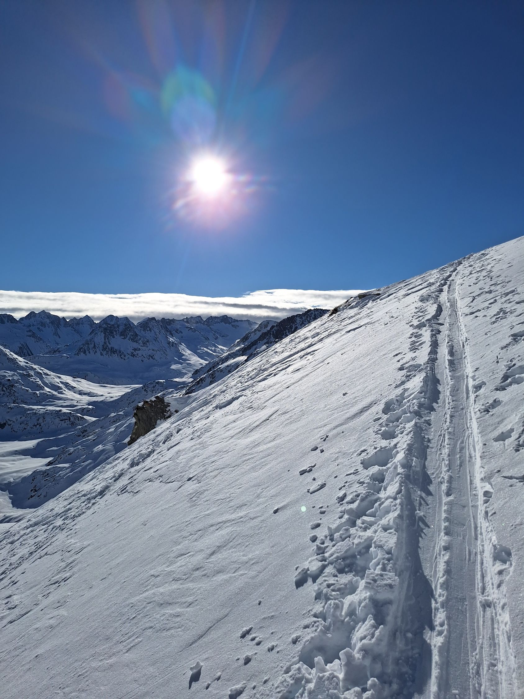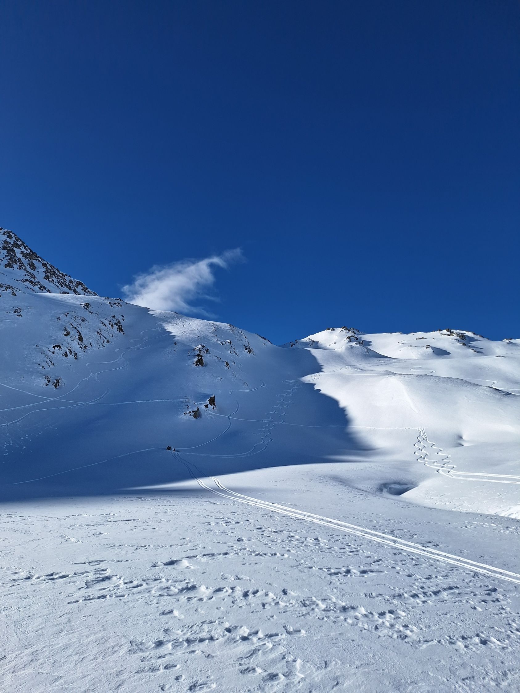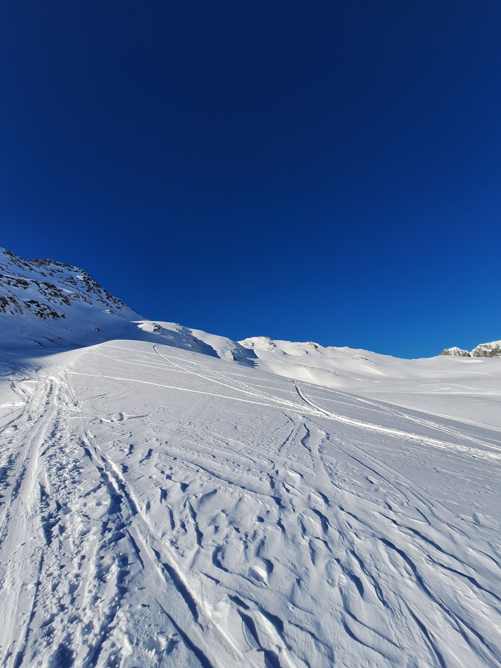 Oben zum Teil recht verblasen, wenig Schnee. Unten Richtung Oberalppass zum Teil Pulver, abwechseld mit Deckel Bruchharsch und Tragenden Schicht. Empfehlenswert eher Abfahrt nach Tschamutt