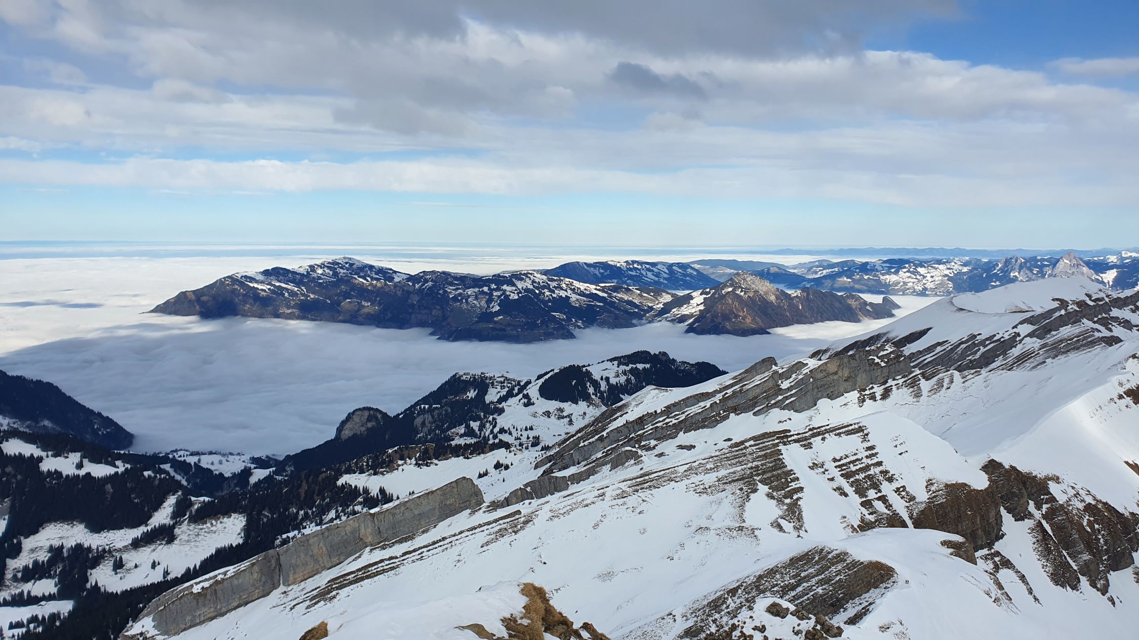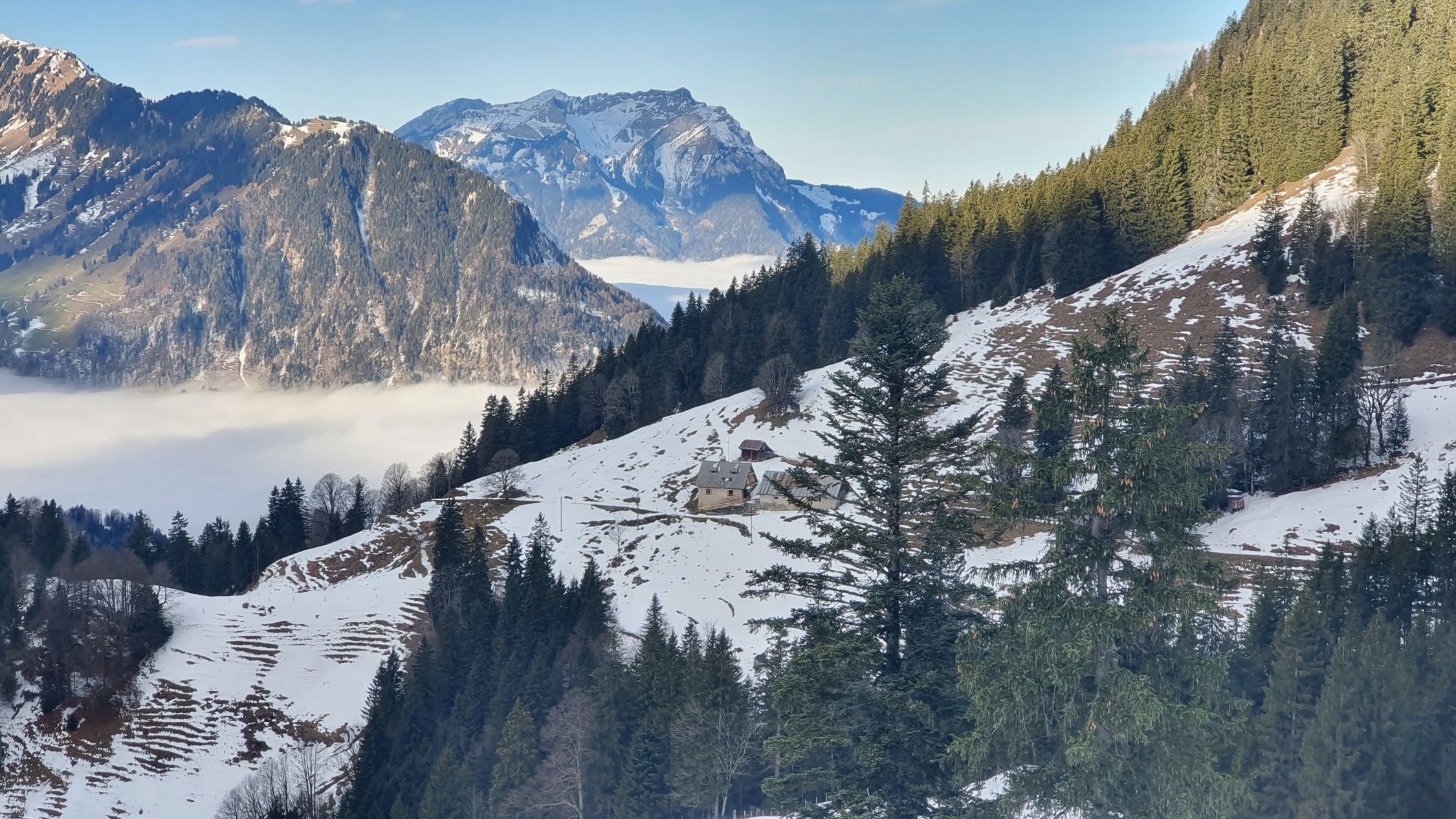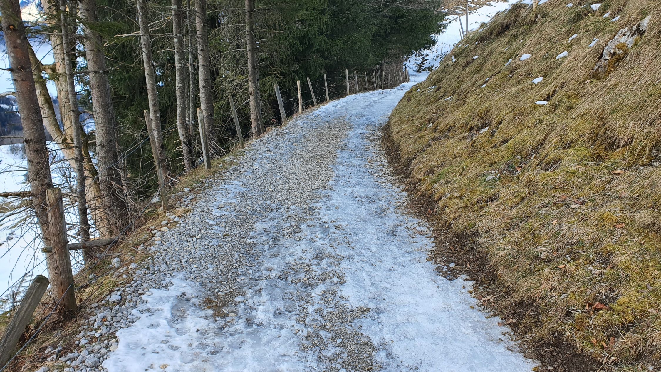 Tragestrecken werden länger. Viele sind heute auch zum Alpboden abgefahren, aber ob das Strässchen von dort zurück nach Niederrickenbach noch durchgehend schneebedeckt ist, kann ich nicht sagen.