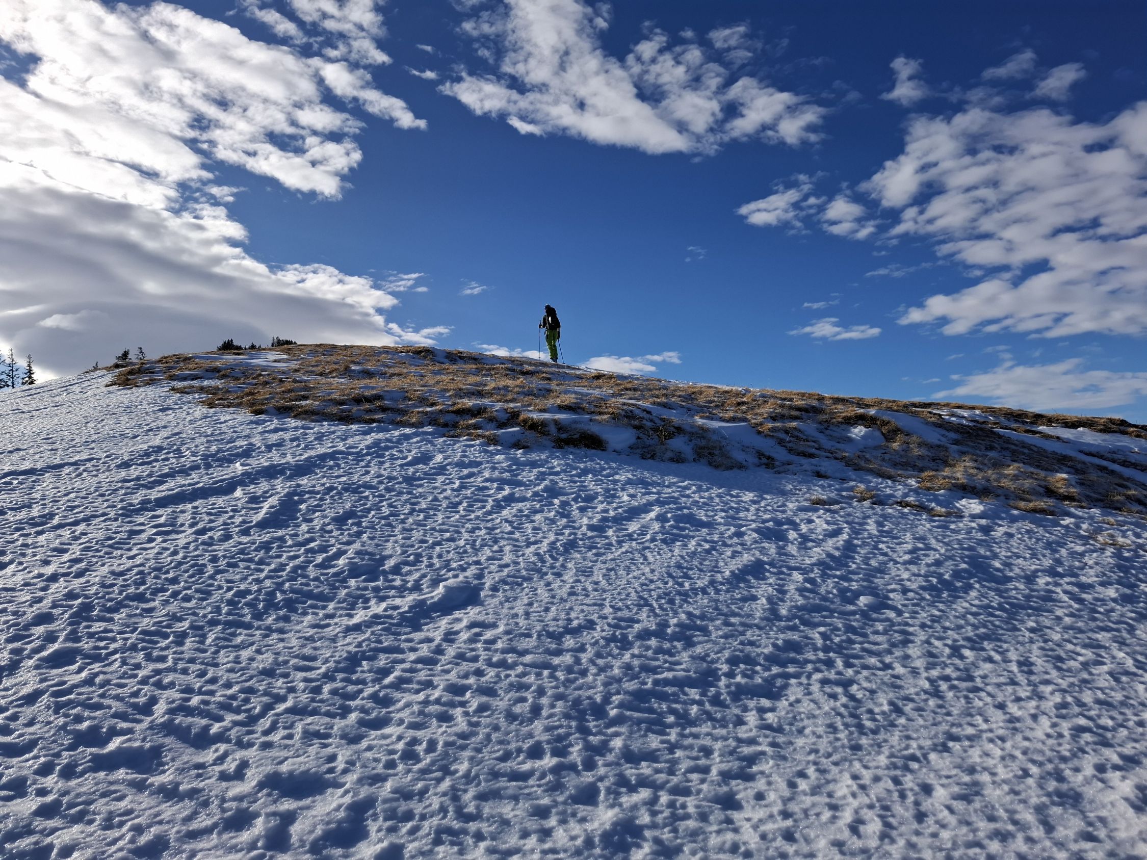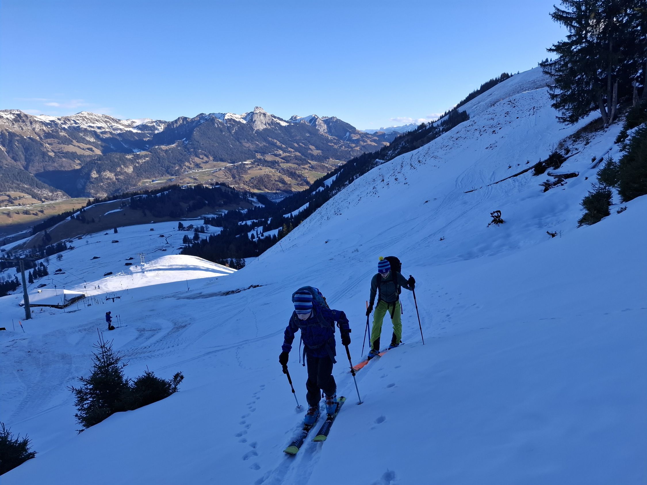 Wetter Schön mit wenigen Wolken. Praktisch windstill. Schnee genügend nur 1x kurze tragstrecke. Am grad oft abgeblasen. Aber meist mit Gras Untergrund. Würden Abfahrt eher Richtung Ritzli Empfehlen. Wir haben Nur den Aufstieg gemacht und sind in den Gasebode Abgefahren was sehr gut war. Zwar das meiste verfahren aber wer sucht der findet noch kurze Leckerlis.