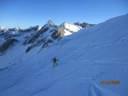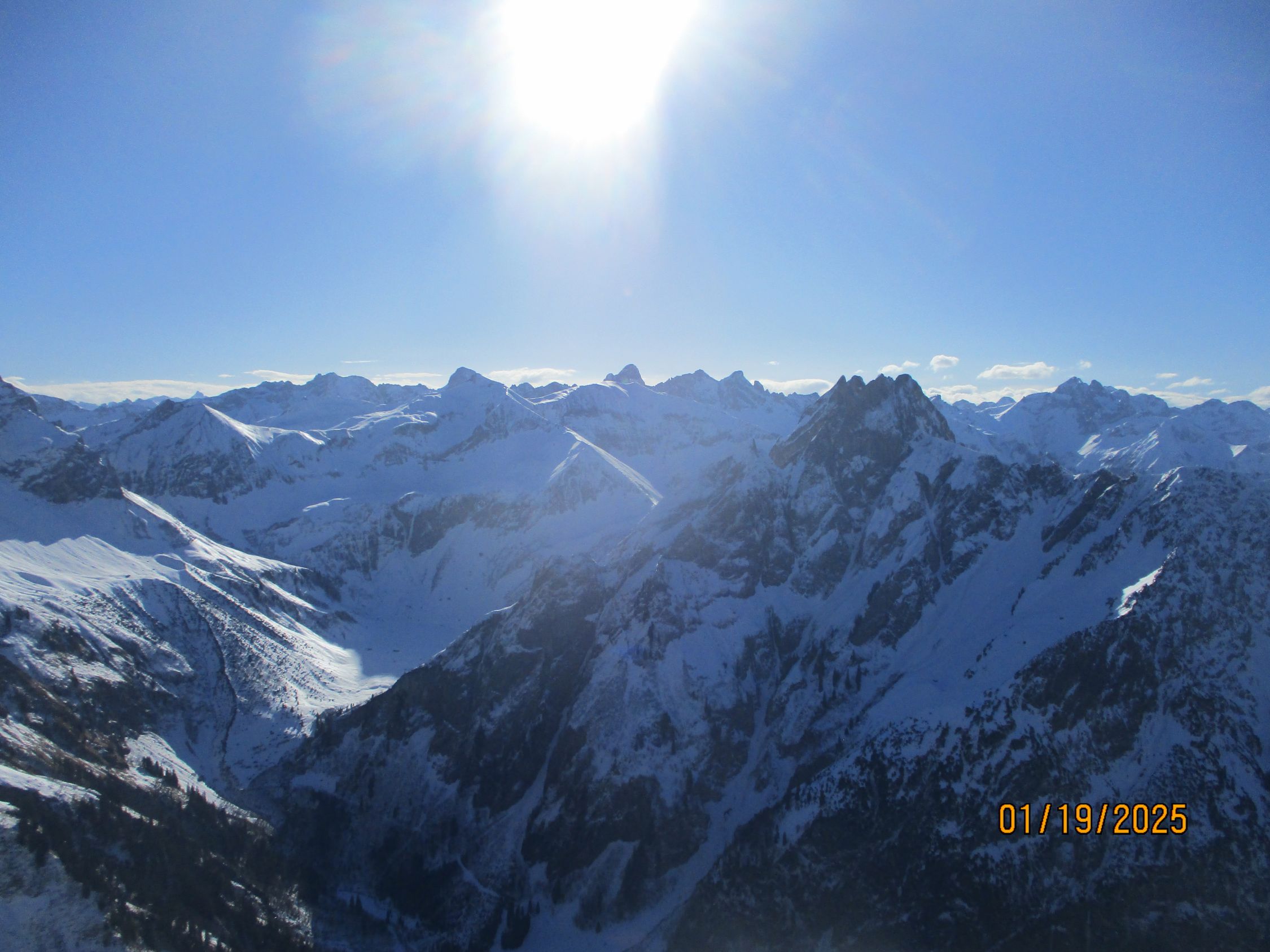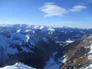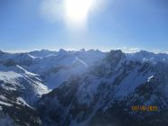 Prachtwetter mit genialen Fernsichten. Der Föhn wehte nur schwach und lau und sorgte bereits zum Tourenbeginn (8.40 h ab Schwarzenberghütte) selbst im Schatten für milde Temperaturen.