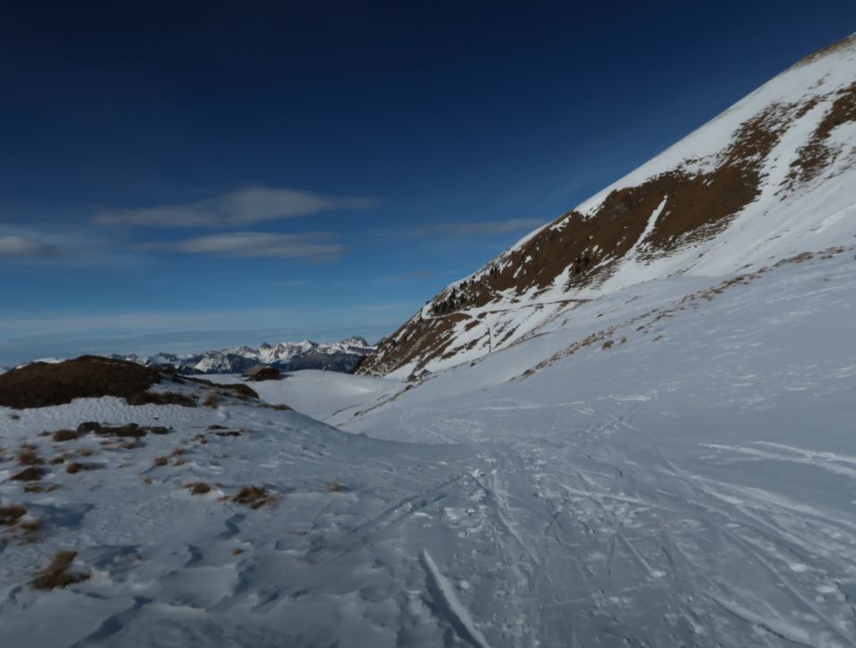 Jede Schneeart, immer zu wenig, aber mit der nötigen Vorsicht ok. Gipfelhang nicht lohnend, viele Steine