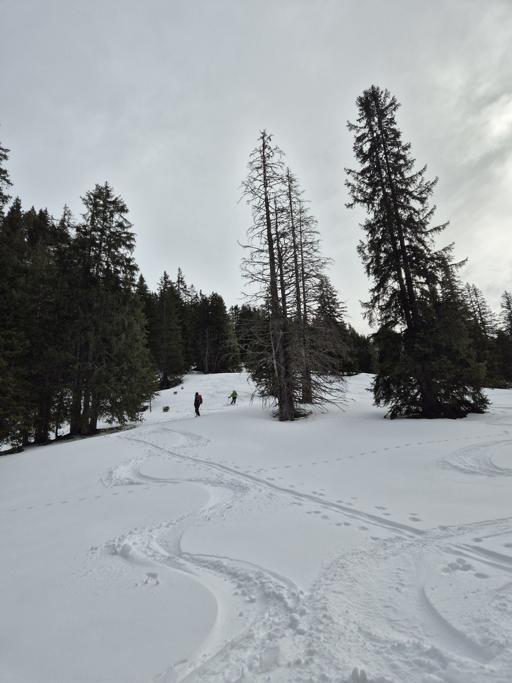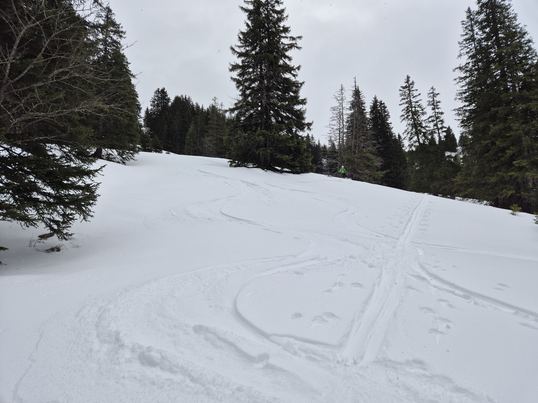 Oberhalb Menigwald im Schwalmere Graben immer noch schöne Pulverschwünge möglich.