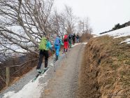 Ab der Bergstation hat es knapp Schnee. Ein paar kurze Stellen sind grün. Ab ca. 1500 m dann durchgehend schneebedeckt. Der Schnee war hart gefroren. Die bestehende Spur z.T. etwas glatt sodass es besser neben der Spur zu gehen war.